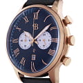 Стальной корпус круглой формы диаметром 43.8 мм и толщиной 12.3 мм выполнен из нержавеющей стали, что обеспечивает высокую прочность и долговечность. Натуральный кожаный ремешок шириной 22 мм помогает оптимально зафиксировать часы на вашей руке и является их грамотным дополнением. Ремешок выполнен в синем цвете, что придает часам элегантный и современный вид.