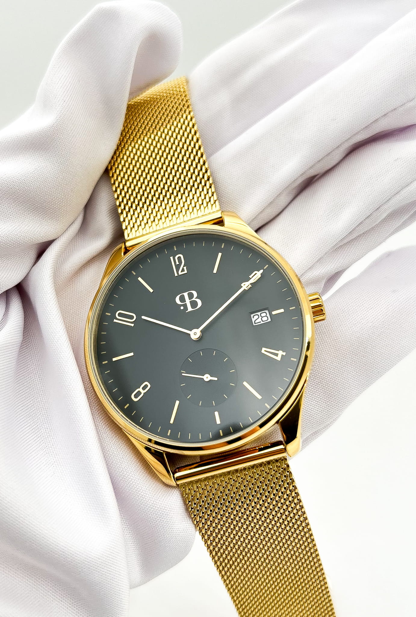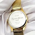 Металлический браслет миланского плетения на раскладном замкеРаскладной замокДанный вариант застежки используется только на часах с металлическим браслетом. Отличительная особенность такого крепления в том, что длина браслета становится универсальной и вы можете самостоятельно отрегулировать нужный вам размер – застежка просто двигается по браслету часов. изготовлен из нержавеющей стали с PVD-покрытиемPVDУльтратонкое покрытие наносится в технике вакуумного напыления, сочетает в себе нитрид титана особой прочности со слоем золота или оксида хрома. Несёт в себе декоративную или защитную функцию., что обеспечивает прочность и долговечность.