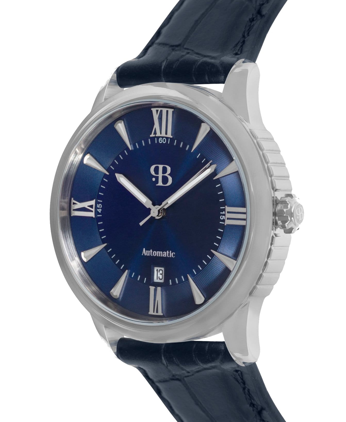 Мужские механические часы с автоподзаводом — это классический аксессуар для ценителя традиций. Корпус размером 42×11 мм выполнен из нержавеющей стали. Циферблат синего цвета оформлен римскими цифрами и стрелками. Окошко даты расположено в положении 3 часов. Стрелки с люминесцентным покрытиемЛюминесцентное покрытиеПозволяет считывать показания времени в темноте. Производители наносят на стрелки, часовые индексы, безель или поверхность циферблата светонакопительный состав, дающий холодное свечение., обеспечивающим хорошую читаемость в темноте. Циферблат защищён минеральным стекломМинеральное стеклоМинеральное стекло представляет собой искусственно выращенный минерал кварца. Такое стекло отличается особой устойчивостью к повреждениям и царапинам. Уступает по некоторым качествам сапфировому стеклу.. Часы оснащены кожаным ремешком с стандартной застёжкой. Водонепроницаемость 50 м позволяет использовать часы в повседневных условиях, включая плавание на поверхности. Идеальный выбор для тех, кто ценит стиль, точность и надёжность.