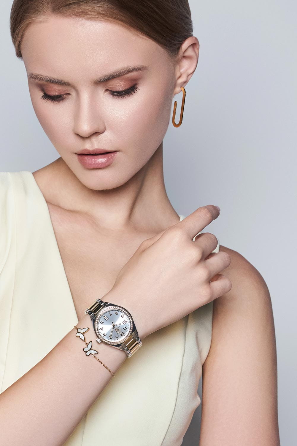 Женские кварцевые часы Santa Barbara Polo & Racquet Club — это стильный и практичный аксессуар. Корпус диаметром 36 мм и высотой 42,5 мм выполнен из латуни. БезельБезельВнешний ободок, закрепляющий стекло. В спортивных часах так называется поворотное кольцо с делениями на циферблате, выполняет роль таймера – замеряет отрезки времени на шкале. Неподвижный безель – элемент декора. Однонаправленно вращающийся безель на дайверских часах позволяет фиксировать моменты погружения и выныривания на поверхность. с IP-покрытиемIP-покрытиеМетод ионного напыления. Демонстрирует повышенную устойчивость к истиранию, окислению и химическим веществам. Под воздействием высокого давления и температуры около 1500°C молекулы металла надёжно соединяются с частицами корпуса часов. украшен кристаллами, придающими изделию изысканный блеск. Циферблат серебристого цвета оформлен по технологии Sunray («солнечные лучи»), дополнен накладными метками в виде штрихов и фирменным логотипом. Окошко даты расположено в положении 6 часов. Стрелки с люминесцентным покрытиемЛюминесцентное покрытиеПозволяет считывать показания времени в темноте. Производители наносят на стрелки, часовые индексы, безель или поверхность циферблата светонакопительный состав, дающий холодное свечение., обеспечивающим хорошую читаемость в темноте. Циферблат защищён минеральным стекломМинеральное стеклоМинеральное стекло представляет собой искусственно выращенный минерал кварца. Такое стекло отличается особой устойчивостью к повреждениям и царапинам. Уступает по некоторым качествам сапфировому стеклу.. Часы оснащены стальным браслетом с IP-покрытиемIP-покрытиеМетод ионного напыления. Демонстрирует повышенную устойчивость к истиранию, окислению и химическим веществам. Под воздействием высокого давления и температуры около 1500°C молекулы металла надёжно соединяются с частицами корпуса часов. и раскладной застёжкойРаскладная застёжкаТакой тип застёжки используется только на браслетах из металла. Она никогда не раскрывается полностью, происходит разделение на 2 и более частей. Раскладывающая застёжка снизит вероятность потери часов к минимуму.. Водонепроницаемость 50 м позволяет использовать часы в повседневных условиях. Идеальный выбор для тех, кто ценит стиль, надёжность и качество.