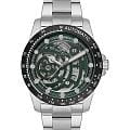 Мужские механические часы с автоподзаводом Santa Barbara Polo & Racquet Club — это эффектный аксессуар с оригинальным дизайном. Корпус диаметром 42 мм и высотой 49,5 мм выполнен из стали. БезельБезельВнешний ободок, закрепляющий стекло. В спортивных часах так называется поворотное кольцо с делениями на циферблате, выполняет роль таймера – замеряет отрезки времени на шкале. Неподвижный безель – элемент декора. Однонаправленно вращающийся безель на дайверских часах позволяет фиксировать моменты погружения и выныривания на поверхность. из стали с IP-покрытиемIP-покрытиеМетод ионного напыления. Демонстрирует повышенную устойчивость к истиранию, окислению и химическим веществам. Под воздействием высокого давления и температуры около 1500°C молекулы металла надёжно соединяются с частицами корпуса часов.. Циферблат зелёного цвета частично скелетонизирован, что позволяет наблюдать за работой механизма. Двухуровневый циферблат украшен накладными метками в виде точек и фирменным логотипом. Стрелки и метки с люминесцентным покрытиемЛюминесцентное покрытиеПозволяет считывать показания времени в темноте. Производители наносят на стрелки, часовые индексы, безель или поверхность циферблата светонакопительный состав, дающий холодное свечение., обеспечивающим хорошую читаемость в темноте. Циферблат защищён минеральным стекломМинеральное стеклоМинеральное стекло представляет собой искусственно выращенный минерал кварца. Такое стекло отличается особой устойчивостью к повреждениям и царапинам. Уступает по некоторым качествам сапфировому стеклу.. Прозрачная задняя крышка открывает вид на механизм. Часы оснащены стальным браслетом с раскладной застёжкойРаскладная застёжкаТакой тип застёжки используется только на браслетах из металла. Она никогда не раскрывается полностью, происходит разделение на 2 и более частей. Раскладывающая застёжка снизит вероятность потери часов к минимуму.. Водонепроницаемость 50 м позволяет использовать часы в повседневных условиях. Идеальный выбор для тех, кто ценит технологичность, стиль и выразительность.