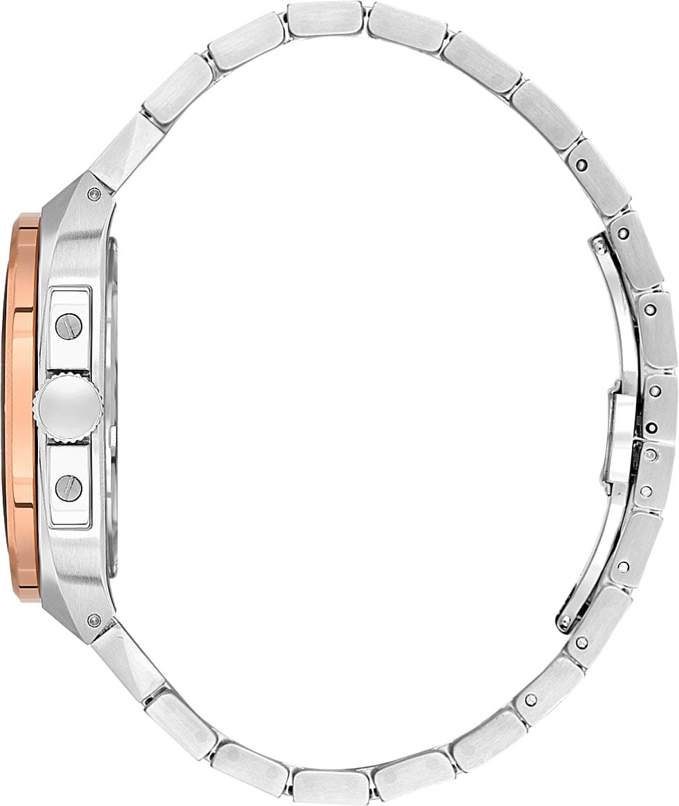 Мужские механические часы с автоподзаводом Santa Barbara Polo & Racquet Club — это сочетание практичности и сдержанного стиля. Корпус диаметром 40,5 мм выполнен из нержавеющей стали 316L. БезельБезельВнешний ободок, закрепляющий стекло. В спортивных часах так называется поворотное кольцо с делениями на циферблате, выполняет роль таймера – замеряет отрезки времени на шкале. Неподвижный безель – элемент декора. Однонаправленно вращающийся безель на дайверских часах позволяет фиксировать моменты погружения и выныривания на поверхность. с IP-покрытиемIP-покрытиеМетод ионного напыления. Демонстрирует повышенную устойчивость к истиранию, окислению и химическим веществам. Под воздействием высокого давления и температуры около 1500°C молекулы металла надёжно соединяются с частицами корпуса часов. розового золота, с матовой и полированной отделкой. Циферблат белого цвета фактурный, украшен фирменным логотипом и накладными метками в виде штрихов. Через прозрачное окошко на циферблате можно наблюдать за работой механизма. Стрелки прямоугольные, заострённые, в стиле Baton, с люминесцентным покрытиемЛюминесцентное покрытиеПозволяет считывать показания времени в темноте. Производители наносят на стрелки, часовые индексы, безель или поверхность циферблата светонакопительный состав, дающий холодное свечение., обеспечивающим хорошую читаемость в темноте. Циферблат защищён минеральным стеклом. Часы оснащены браслетом из стали с IP-покрытиемIP-покрытиеМетод ионного напыления. Демонстрирует повышенную устойчивость к истиранию, окислению и химическим веществам. Под воздействием высокого давления и температуры около 1500°C молекулы металла надёжно соединяются с частицами корпуса часов. на застёжке «бабочка» с кнопкамиЗастёжка "бабочка"Такой вид застёжки дополняется предохранителями, помогающими избежать случайного раскрытия браслета. Обладают изящным исполнением. . Водонепроницаемость 50 м позволяет использовать часы в повседневных условиях. Идеальный выбор для тех, кто ценит качество, надёжность и утончённый дизайн.