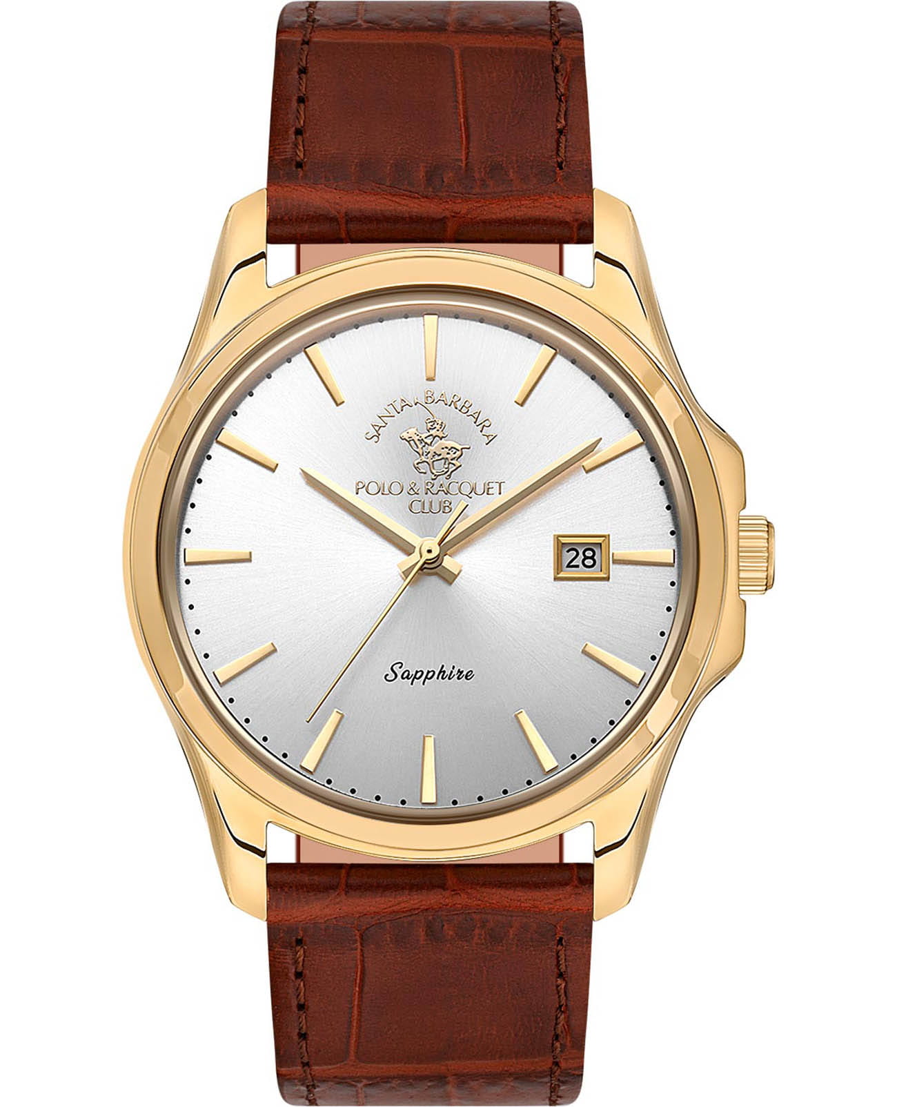 Мужские кварцевые часы Santa Barbara Polo & Racquet Club — это сдержанный и элегантный аксессуар для делового образа. Корпус диаметром 41 мм и высотой 50 мм выполнен из нержавеющей стали 316L с IP-покрытиемIP-покрытиеМетод ионного напыления. Демонстрирует повышенную устойчивость к истиранию, окислению и химическим веществам. Под воздействием высокого давления и температуры около 1500°C молекулы металла надёжно соединяются с частицами корпуса часов.. Циферблат серебристого цвета оформлен по технологии Sunray («солнечные лучи»), дополнен накладными метками в виде штрихов и фирменным логотипом. Окошко даты расположено в положении 3 часов. Стрелки мечевидной формы. Циферблат защищён минеральным стеклом. Часы оснащены кожаным ремешком с застёжкой «бабочка» с кнопкамиЗастёжка "бабочка"Такой вид застёжки дополняется предохранителями, помогающими избежать случайного раскрытия браслета. Обладают изящным исполнением. . Водонепроницаемость 50 м позволяет использовать часы в повседневных условиях. Идеальный выбор для тех, кто ценит стиль, надёжность и деловую эстетику.