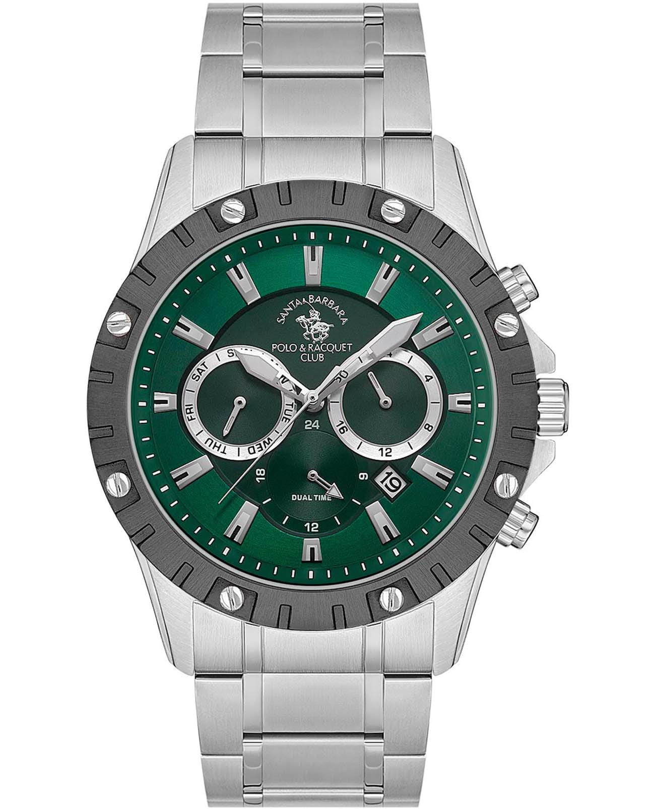 Santa Barbara Polo & Racquet Club Legend SB.1.10545-3 — стильные мужские часы, сочетающие спортивную динамику и функциональность. Крупный корпус выполнен из нержавеющей стали 316L с неподвижным безелемБезельВнешний ободок, закрепляющий стекло. В спортивных часах так называется поворотное кольцо с делениями на циферблате, выполняет роль таймера – замеряет отрезки времени на шкале. Неподвижный безель – элемент декора. Однонаправленно вращающийся безель на дайверских часах позволяет фиксировать моменты погружения и выныривания на поверхность. с IP-покрытиемIP-покрытиеМетод ионного напыления. Демонстрирует повышенную устойчивость к истиранию, окислению и химическим веществам. Под воздействием высокого давления и температуры около 1500°C молекулы металла надёжно соединяются с частицами корпуса часов. и гармонично дополнен стальным браслетом на раскладной застёжкеРаскладная застёжкаТакой тип застёжки используется только на браслетах из металла. Она никогда не раскрывается полностью, происходит разделение на 2 и более частей. Раскладывающая застёжка снизит вероятность потери часов к минимуму.. Циферблат с акцентными метками и стрелками с люминесцентным покрытиемЛюминесцентное покрытиеПозволяет считывать показания времени в темноте. Производители наносят на стрелки, часовые индексы, безель или поверхность циферблата светонакопительный состав, дающий холодное свечение. оформлен в многослойной структуре и оснащён вспомогательными индикаторами, 12-ти и 24-х часовой формат времени. В нижней части расположено окошко даты, что делает модель ещё более практичной. Минеральное стеклоМинеральное стеклоМинеральное стекло представляет собой искусственно выращенный минерал кварца. Такое стекло отличается особой устойчивостью к повреждениям и царапинам. Уступает по некоторым качествам сапфировому стеклу. защищает циферблат от царапин, а кварцевый механизм обеспечивает высокую точность. Водонепроницаемость 50 метров позволит защитить корпус от случайных брызг или капель дождя. Благодаря своей универсальной эстетике эти часы уместны и в деловой среде, и в повседневном образе.