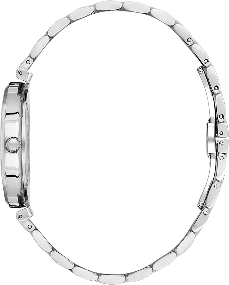 Циферблат оформлен в сдержанной эстетике: тонкие часовые метки и окошко даты на «3 часах» создают гармоничный баланс функциональности и утончённости. Поверхность защищена минеральным стекломМинеральное стеклоМинеральное стекло представляет собой искусственно выращенный минерал кварца. Такое стекло отличается особой устойчивостью к повреждениям и царапинам. Уступает по некоторым качествам сапфировому стеклу., устойчивым к царапинам и ударам.