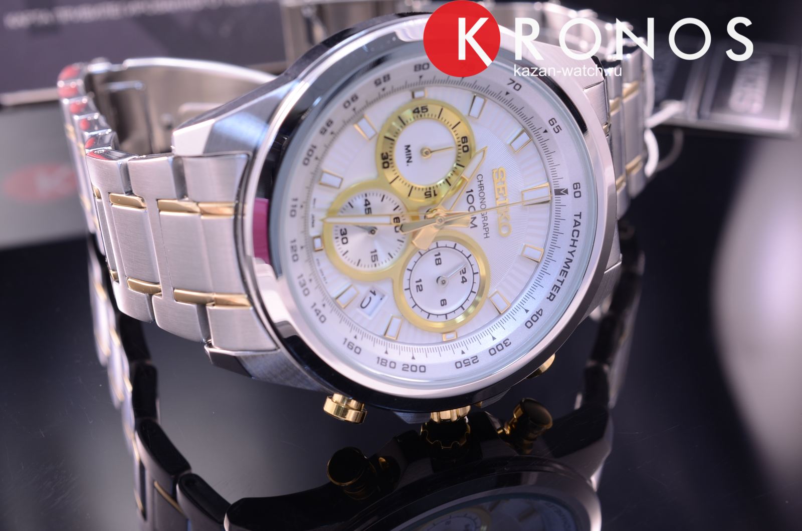 Современные японские наручные кварцевые мужские часы. Круглый корпус часов выполнен из высокопрочной стали с антикоррозийными свойствами с частичным PVD покрытием. Серебристый фон циферблата и золотые элементы дизайна. Водонепроницаемость 10 ATM. Минеральное стекло Hardlex, устойчивое к появлению царапин. Часы оснащены хронографом.