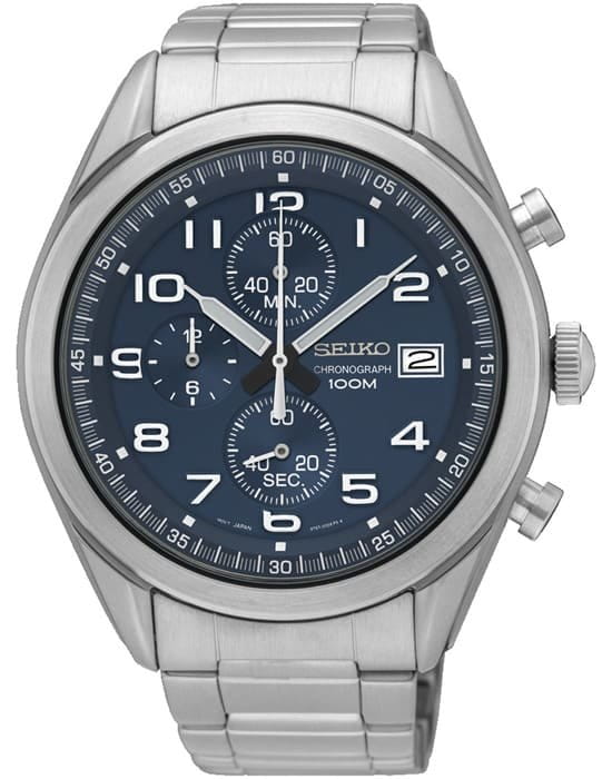 Мужские кварцевые часы. Корпус этих часов выполнен из нержавеющей стали. Модель Chronograph SSB267P1 имеет стекло хардлекс, стальной браслет металлический, синий циферблат. Водоустойчивость: 100 метров. Дополнительные функции и особенности: дата, хронограф.