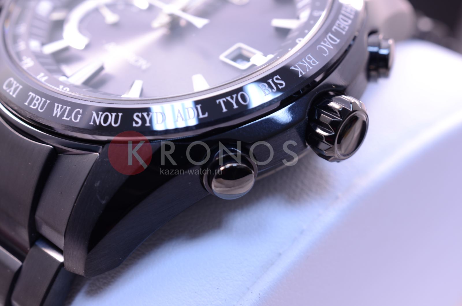 Astron GPS Solar World-Time. Часы со встроенным GPS-приемником определяют часовой пояс, дату и точное время. Питание от солнечной энергии, индикатор уровня зарядки батареи. Функция сохранения энергии. Запас хода при полной зарядке аккумулятора 6 месяцев, при включенной функции сохранения энергии - 2 года. Ручная и автоматическая корректировка времени и часового пояса. Установка летнего времени. Функции приема GPS-сигнала: режим ''В полете'', показ количества спутников, показ результата последнего приема, проверка установленного часового пояса, автоматический прием информации о секунде координации. Мировое время - часы распознают 40 часовых поясов. Ретроградный индикатор отображает: состояние зарядки батареи, режим ''В полете'', включение/отключение летнего времени. Керамический безель. Завинчивающаяся задняя крышка. Браслет с раскладывающейся застежкой.