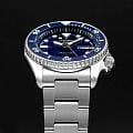 Мужские механические часы с автоподзаводом Seiko — это надёжный и функциональный аксессуар. Корпус размером 38 мм и толщиной 12 мм выполнен из нержавеющей стали. БезельБезельВнешний ободок, закрепляющий стекло. В спортивных часах так называется поворотное кольцо с делениями на циферблате, выполняет роль таймера – замеряет отрезки времени на шкале. Неподвижный безель – элемент декора. Однонаправленно вращающийся безель на дайверских часах позволяет фиксировать моменты погружения и выныривания на поверхность. с PVD-покрытиемPVDУльтратонкое покрытие наносится в технике вакуумного напыления, сочетает в себе нитрид титана особой прочности со слоем золота или оксида хрома. Несёт в себе декоративную или защитную функцию. однонаправленно вращающийся. Циферблат синего цвета оформлен индексами и стрелками. Окошки даты и дня недели расположены в положении 3 часов. Стрелки и метки с люминесцентным покрытиемЛюминесцентное покрытиеПозволяет считывать показания времени в темноте. Производители наносят на стрелки, часовые индексы, безель или поверхность циферблата светонакопительный состав, дающий холодное свечение. LumiBrite, обеспечивающим хорошую читаемость в темноте. Циферблат защищён прочным закалённым минеральным стеклом Hardlex. Механизм — автоматический калибр 4R36 (24 камня, частота 21 600 полуколебаний в час) с функцией остановки секундной стрелки и запасом хода до 41 часа. Заводная головка с защитой смещена в положение 4 часов. Прозрачная задняя крышка позволяет наблюдать за работой механизма. Часы оснащены стальным браслетом на тройной раскладной застёжкеРаскладная застёжкаТакой тип застёжки используется только на браслетах из металла. Она никогда не раскрывается полностью, происходит разделение на 2 и более частей. Раскладывающая застёжка снизит вероятность потери часов к минимуму. с фиксатором. Водонепроницаемость 100 м позволяет использовать часы для плавания и повседневного ношения. Идеальный выбор для тех, кто ценит японское качество и точность.