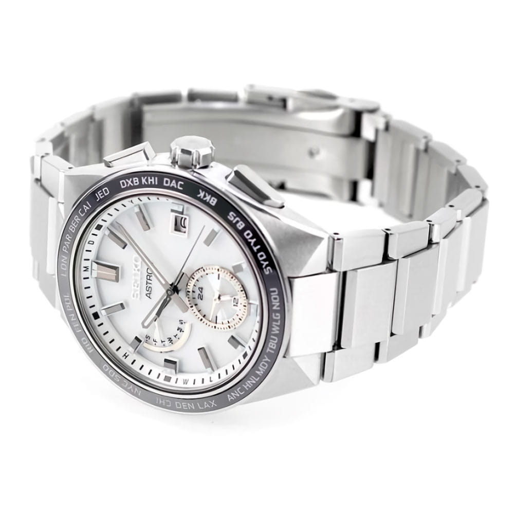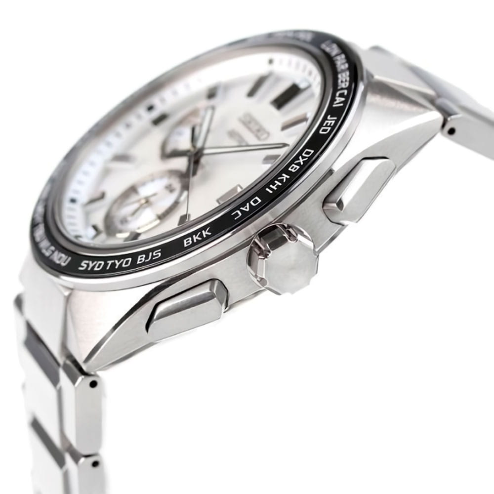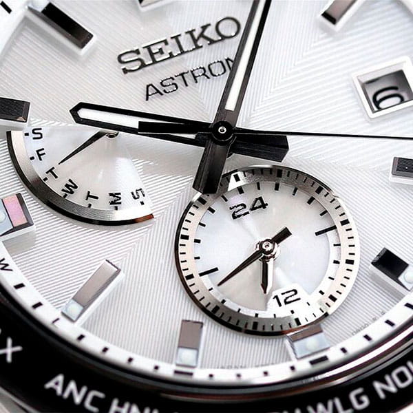 Мужские кварцевые часы Seiko — это высокотехнологичный аксессуар с солнечным питанием и радиосинхронизацией. Корпус диаметром 43 мм и толщиной 11,4 мм выполнен из гипоаллергенного титана. БезельБезельВнешний ободок, закрепляющий стекло. В спортивных часах так называется поворотное кольцо с делениями на циферблате, выполняет роль таймера – замеряет отрезки времени на шкале. Неподвижный безель – элемент декора. Однонаправленно вращающийся безель на дайверских часах позволяет фиксировать моменты погружения и выныривания на поверхность. титановый с DLC-покрытиемDLC-покрытиеDiamond like carbon - одно из лучших видов покрытия, представляющее собой углерод с алмазными свойствами. На поверхность материала наносятся распавшиеся молекулы углерода, превращающиеся в плёнку из алмазоподобных связей, которая перенимает твёрдость алмаза.. Циферблат белого цвета оформлен индексами и стрелками. Окошко даты расположено в положении 3 часов. Стрелки и метки с люминесцентным покрытиемЛюминесцентное покрытиеПозволяет считывать показания времени в темноте. Производители наносят на стрелки, часовые индексы, безель или поверхность циферблата светонакопительный состав, дающий холодное свечение. LumiBrite, обеспечивающим хорошую читаемость в темноте. Циферблат защищён сапфировым стекломСапфировое стеклоПрочный и надёжный материал из кристалла сапфира синтетического происхождения, характеризующийся особой твёрдостью и устойчивостью к царапинам и повреждениям. с антибликовым покрытиемАнтибликовое покрытиеСлой оксида металла в 0,13-0,3 микрон, благодаря которому стекло часов не бликует и не отражает свет. Антибликовое покрытие уменьшает отражение света в 10 раз, обеспечивая отличную читаемость показателей циферблата. для максимальной прозрачности. Механизм — кварцевый калибр 8B63 с технологией Tough SolarTough SolarТехнология основана на подзарядке аккумулятора от источника солнечного света, специальная панель улавливает солнечные лучи и преобразует их в энергию для работы часов. Достаточно пары минут нахождения на солнце для функционирования часов в течении суток., обеспечивающей работу до 6 месяцев в обычном режиме и до 2 лет в режиме энергосбережения. Часы поддерживают автоматическую радиокоррекцию времени, имеют функцию мирового времениМировое время Полезное часовое усложнение, отображающее время в основных городах и известных областях по всему миру, оно связано с часовыми поясами, удобно для путешественников и бизнесменов. , вечный календарьВечный календарьКлассическое часовое усложнение, представляющее собой календарь, рассчитанный на несколько лет вперёд (стандартно – до 2099 года). Определяет текущую дату, день недели, месяц. (до 2100 года), 12/24-часовой формат времени и устойчивы к магнитным полям. Часы оснащены титановым браслетом с раскладной застёжкойРаскладная застёжкаТакой тип застёжки используется только на браслетах из металла. Она никогда не раскрывается полностью, происходит разделение на 2 и более частей. Раскладывающая застёжка снизит вероятность потери часов к минимуму.. Водонепроницаемость 100 м позволяет использовать часы для плавания и повседневного ношения. Идеальный выбор для тех, кто ценит точность, лёгкость и передовые технологии.