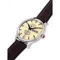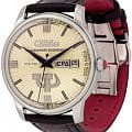 Российские механические часы с автоподзаводом Слава Революция 2600270/300-2427 созданы для тех, кто ценит стиль и надежность. Эта модель является плодом сотрудничества Часовой компании «Слава» и знаменитого мастера Александра Шорохова, который известен своим вкладом в возрождение российского часового мастерства и продвижение культуры в мире. Эти часы выполнены в соответствии с эскизами мастера, с использованием революционных символов — серпа и молота. Часы Слава «Революция» обладают механизмом с автоподзаводом «Слава 2427», украшенным ручной гравировкой, который можно наблюдать через прозрачную заднюю крышку. Этот механизм обеспечивает надежность и точность, а также добавляет элемент эксклюзивности. Корпус часов выполнен из стали и имеет серебристый оттенок, который гармонично сочетается с бежевым циферблатом. Диаметр корпуса составляет 44 мм, а толщина — 14,5 мм, что делает часы выразительными и комфортными для носки. Сапфировое стеклоСапфировое стеклоПрочный и надёжный материал из кристалла сапфира синтетического происхождения, характеризующийся особой твёрдостью и устойчивостью к царапинам и повреждениям. защищает циферблат от царапин и обеспечивает долгий срок службы. Часы оснащены функцией двойного календаря, который отображает дату, что добавляет практичности в повседневной носке. Натуральный кожаный ремешок с застежкой «бабочка»Застёжка "бабочка"Такой вид застёжки дополняется предохранителями, помогающими избежать случайного раскрытия браслета. Обладают изящным исполнением. завершают образ, обеспечивая удобство и стиль. С водонепроницаемостью до 100 метров эти часы подходят для активного образа жизни, позволяя не беспокоиться о случайных контактах с водой, таких как плавание или дождь. Слава «Революция» выпускаются ограниченной серией — в трех видах по 100 штук.