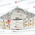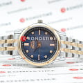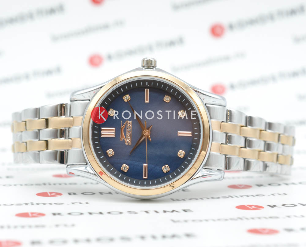 Женские наручные часы Slazenger SL.09.2154.3.02 сочетают в себе классический дизайн и надежность современных технологий. Модель обладает круглым корпусом диаметром 32 мм, изготовленным из суперметалла, что обеспечивает высокую устойчивость к внешним воздействиям. Индексы украшены фианитами. Браслет выполнен из суперметалла с IP-покрытиемIP-покрытиеМетод ионного напыления. Демонстрирует повышенную устойчивость к истиранию, окислению и химическим веществам. Под воздействием высокого давления и температуры около 1500°C молекулы металла надёжно соединяются с частицами корпуса часов. и раскладной застежкойРаскладной замокДанный вариант застежки используется только на часах с металлическим браслетом. Отличительная особенность такого крепления в том, что длина браслета становится универсальной и вы можете самостоятельно отрегулировать нужный вам размер – застежка просто двигается по браслету часов., гарантирующей комфортное ношение и безопасность. Циферблат перламутрового черного цвета декорирован золотистыми стрелками и индексами, которые обеспечивают читаемость времени даже в условиях недостаточной освещенности. Для защиты используется минеральное стеклоМинеральное стеклоМинеральное стекло представляет собой искусственно выращенный минерал кварца. Такое стекло отличается особой устойчивостью к повреждениям и царапинам. Уступает по некоторым качествам сапфировому стеклу., обеспечивающее прочную защиту от царапин. Часы работают на кварцевом механизме, что гарантирует точное время без необходимости подзаводки. Водонепроницаемость часов достигает 3 атмосфер, что позволяет использовать их при мытье рук или хождении под мелким дождем, однако не рекомендуется для плавания или других водных видов спорта. Вес модели составляет 80 грамма.
