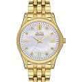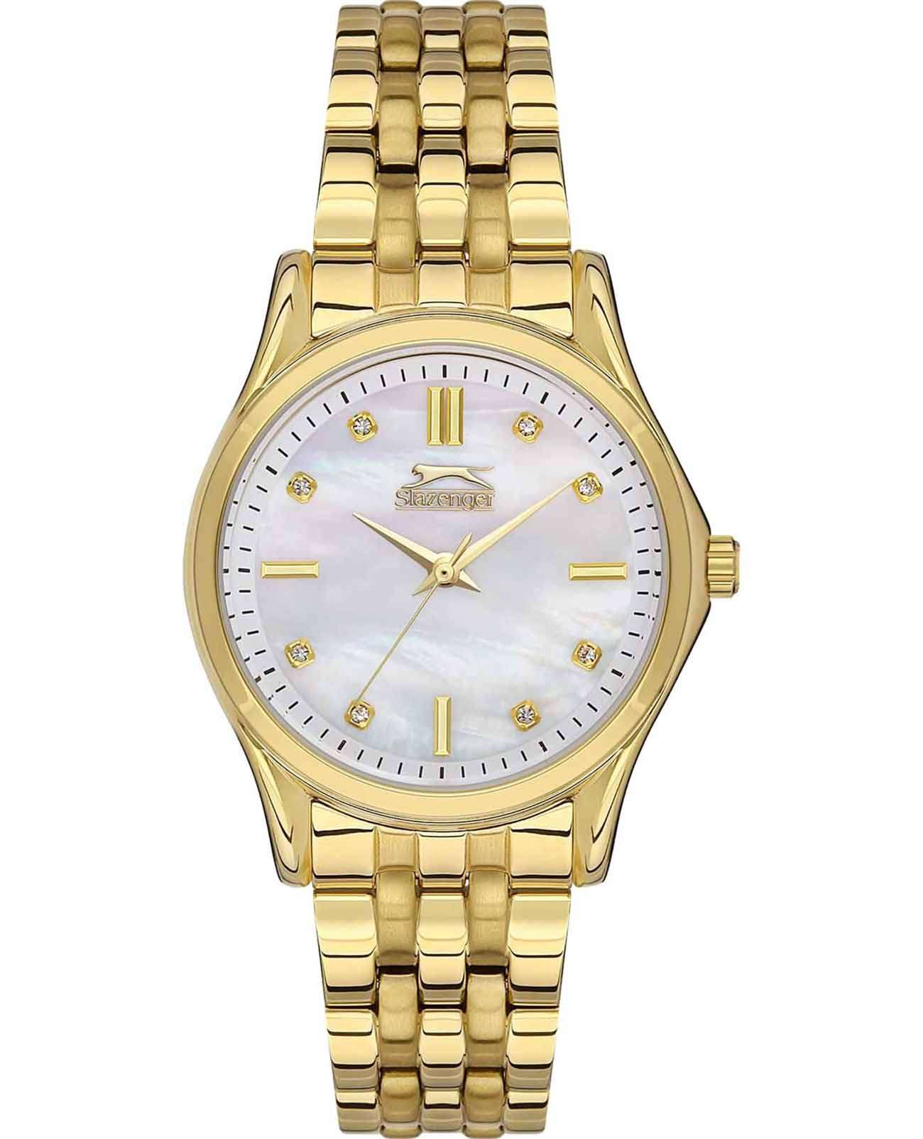 Эти стильные часы Slazenger SL.09.2154.3.05 станут отличным дополнением к вашему образу. Кварцевый механизм обеспечивает точное время, а корпус из суперметалла с золотистым IP-покрытиемIP-покрытиеМетод ионного напыления. Демонстрирует повышенную устойчивость к истиранию, окислению и химическим веществам. Под воздействием высокого давления и температуры около 1500°C молекулы металла надёжно соединяются с частицами корпуса часов. придаёт аксессуару современный вид и дополнительную прочность. Перламутровый белый циферблат украшен изысканными фианитами, что добавляет часам элегантности и блеска. Металлический браслет, с золотистым IP-покрытиемIP-покрытиеМетод ионного напыления. Демонстрирует повышенную устойчивость к истиранию, окислению и химическим веществам. Под воздействием высокого давления и температуры около 1500°C молекулы металла надёжно соединяются с частицами корпуса часов., отличается плавностью линий и удобной раскладной застёжкойРаскладная застёжкаТакой тип застёжки используется только на браслетах из металла. Она никогда не раскрывается полностью, происходит разделение на 2 и более частей. Раскладывающая застёжка снизит вероятность потери часов к минимуму.. Водозащита на уровне 30WR позволяет не беспокоиться о случайных брызгах в повседневной жизни. Минеральное стеклоМинеральное стеклоМинеральное стекло представляет собой искусственно выращенный минерал кварца. Такое стекло отличается особой устойчивостью к повреждениям и царапинам. Уступает по некоторым качествам сапфировому стеклу. защищает циферблат от царапин, а компактные габариты — диаметр 32 мм и толщина 9 мм — делают эти часы комфортными для ношения.