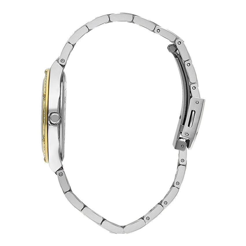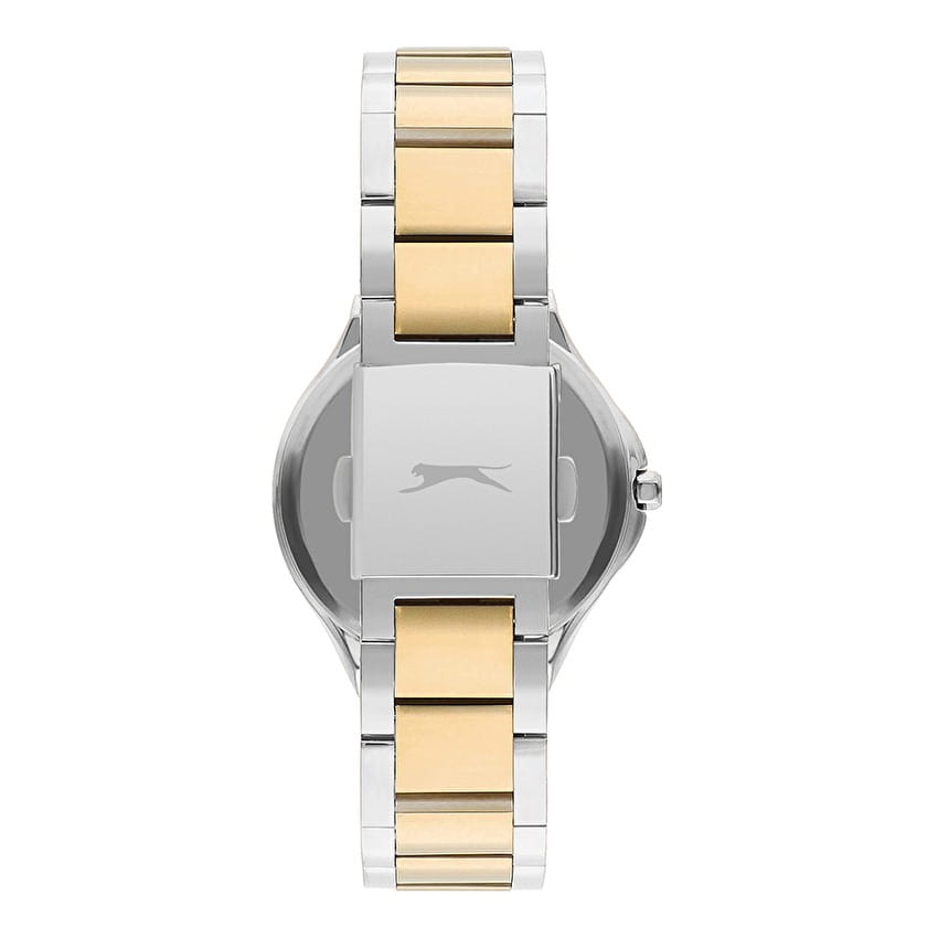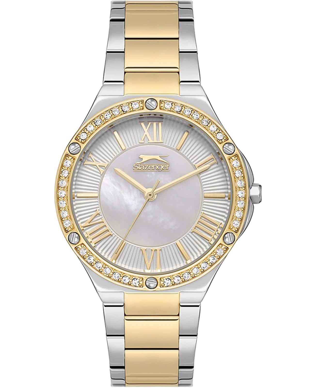 Часы Slazenger SL.09.2225.3.03 — это изысканный аксессуар, который подчеркнёт ваш стиль и индивидуальность. Модель оснащена надёжным кварцевым механизмом, обеспечивающим точность хода. Корпус из прочного металла диаметром 35 мм, а безельБезельВнешний ободок, закрепляющий стекло. В спортивных часах так называется поворотное кольцо с делениями на циферблате, выполняет роль таймера – замеряет отрезки времени на шкале. Неподвижный безель – элемент декора. Однонаправленно вращающийся безель на дайверских часах позволяет фиксировать моменты погружения и выныривания на поверхность. с золотистым IP-покрытиемIP-покрытиеМетод ионного напыления. Демонстрирует повышенную устойчивость к истиранию, окислению и химическим веществам. Под воздействием высокого давления и температуры около 1500°C молекулы металла надёжно соединяются с частицами корпуса часов. украшен сияющими кристаллами. Перламутровый циферблат придаёт часам особый шарм. Металлический серебристый браслет с частичным золотистым IP-покрытиемIP-покрытиеМетод ионного напыления. Демонстрирует повышенную устойчивость к истиранию, окислению и химическим веществам. Под воздействием высокого давления и температуры около 1500°C молекулы металла надёжно соединяются с частицами корпуса часов. с удобной раскладной застёжкойРаскладная застёжкаТакой тип застёжки используется только на браслетах из металла. Она никогда не раскрывается полностью, происходит разделение на 2 и более частей. Раскладывающая застёжка снизит вероятность потери часов к минимуму. гармонично дополняет изящный дизайн. Минеральное стеклоМинеральное стеклоМинеральное стекло представляет собой искусственно выращенный минерал кварца. Такое стекло отличается особой устойчивостью к повреждениям и царапинам. Уступает по некоторым качествам сапфировому стеклу. защищает циферблат от царапин, а водозащита уровня WR 30 позволяет не беспокоиться о случайных каплях воды. Заводная головка оснащена специальной защитой. Эти часы станут прекрасным выбором для тех, кто ценит сочетание элегантности и функциональности.
