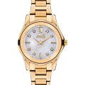 Женские наручные часы Slazenger SL.09.2235.3.06 сочетают в себе классический дизайн и надежность современных технологий. Модель обладает круглым корпусом диаметром 32 мм, изготовленным из суперметалла с IP-покрытиемIP-покрытиеМетод ионного напыления. Демонстрирует повышенную устойчивость к истиранию, окислению и химическим веществам. Под воздействием высокого давления и температуры около 1500°C молекулы металла надёжно соединяются с частицами корпуса часов., что обеспечивает высокую устойчивость к внешним воздействиям. Индексы украшены фианитами. Браслет выполнен из суперметалла с IP-покрытиемIP-покрытиеМетод ионного напыления. Демонстрирует повышенную устойчивость к истиранию, окислению и химическим веществам. Под воздействием высокого давления и температуры около 1500°C молекулы металла надёжно соединяются с частицами корпуса часов., имеет раскладную застежкуРаскладной замокДанный вариант застежки используется только на часах с металлическим браслетом. Отличительная особенность такого крепления в том, что длина браслета становится универсальной и вы можете самостоятельно отрегулировать нужный вам размер – застежка просто двигается по браслету часов., гарантирующую комфортное ношение и безопасность. Циферблат перламутрового цвета декорирован золотистыми стрелками и индексами, которые обеспечивают читаемость времени даже в условиях недостаточной освещенности. Для защиты используется минеральное стеклоМинеральное стеклоМинеральное стекло представляет собой искусственно выращенный минерал кварца. Такое стекло отличается особой устойчивостью к повреждениям и царапинам. Уступает по некоторым качествам сапфировому стеклу., обеспечивающее прочную защиту от царапин. Часы работают на кварцевом механизме, что гарантирует точное время без необходимости подзаводки. Водонепроницаемость часов достигает 3 атмосфер, что позволяет использовать их при мытье рук или хождении под мелким дождем, однако не рекомендуется для плавания или других водных видов спорта. Вес модели составляет 72 грамма.