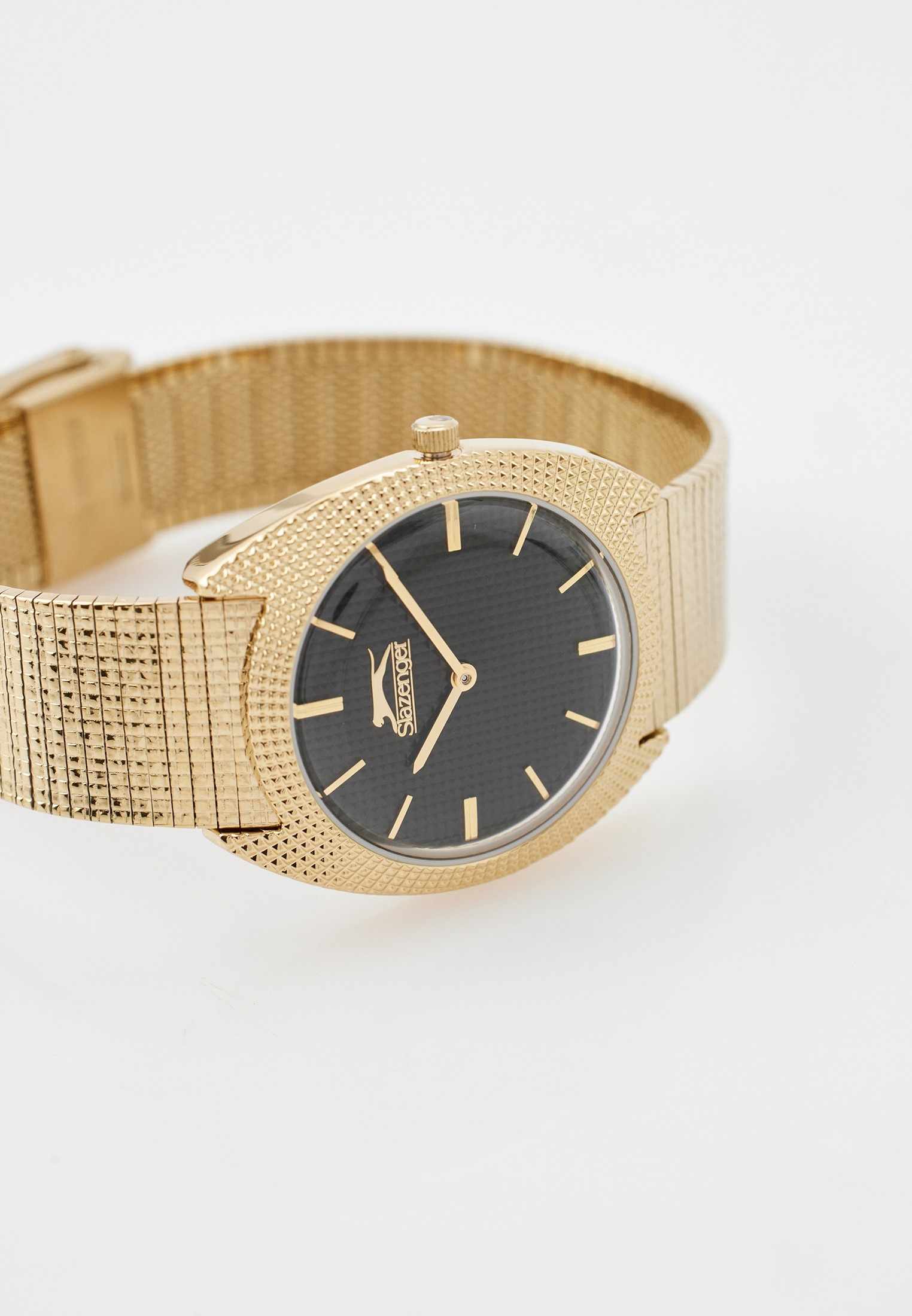 Часы Slazenger SL.09.2261.3.06 — это утонченное сочетание современного дизайна и классической элегантности. Изделие оснащено надежным кварцевым механизмом, который обеспечивает точность хода и простоту эксплуатации. Корпус из суперметалла с золотистым IP-покрытиемIP-покрытиеМетод ионного напыления. Демонстрирует повышенную устойчивость к истиранию, окислению и химическим веществам. Под воздействием высокого давления и температуры около 1500°C молекулы металла надёжно соединяются с частицами корпуса часов. гармонично сочетается с металлическим браслетом аналогичного оттенка и покрытия, подчеркивая изысканность аксессуара и его актуальность в модных тенденциях. Черный циферблат украшен изысканным гильоше Clous de Paris и дополнен лаконичными метками в виде штрихов, а также фирменным логотипом бренда. Минеральное стеклоМинеральное стеклоМинеральное стекло представляет собой искусственно выращенный минерал кварца. Такое стекло отличается особой устойчивостью к повреждениям и царапинам. Уступает по некоторым качествам сапфировому стеклу. надежно защищает циферблат от случайных царапин. Диаметр корпуса составляет 34 мм, толщина — 8 мм, ширина браслета — 18 мм, а вес часов — всего 54 г, благодаря чему аксессуар удобно сидит на запястье. Стальной браслет c раскладным замкомРаскладной замокДанный вариант застежки используется только на часах с металлическим браслетом. Отличительная особенность такого крепления в том, что длина браслета становится универсальной и вы можете самостоятельно отрегулировать нужный вам размер – застежка просто двигается по браслету часов. удобно фиксируется на запястье и подчёркивает современный характер часов. Водозащита 30WR позволяет не беспокоиться о случайных брызгах. Модель отличается отсутствием секундной стрелки и оснащена рифленой заводной головкой для легкой корректировки времени. Эти часы станут стильным завершением любого образа, подчеркивая индивидуальность и чувство вкуса обладателя.