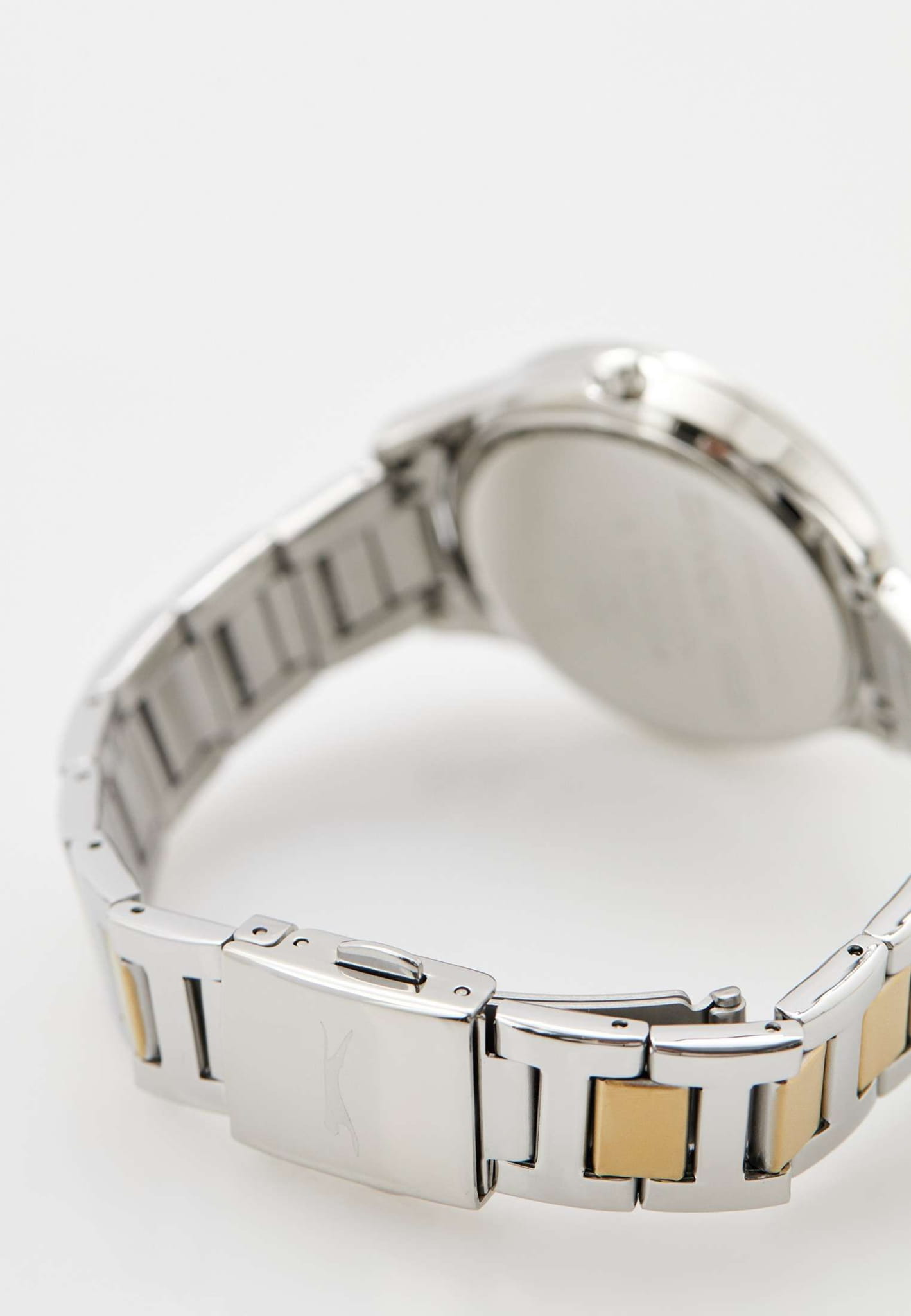 Часы Slazenger SL.09.2284.4.04 — это изящный и функциональный аксессуар, который гармонично дополнит ваш образ и подчеркнет индивидуальность. Корпус и браслет выполнены из инновационного суперметалла — сплава на основе меди с пониженным содержанием цинка и никеля, что обеспечивает долговечность и надежную защиту от внешних воздействий. Черный циферблат, защищенный прочным минеральным стекломМинеральное стеклоМинеральное стекло представляет собой искусственно выращенный минерал кварца. Такое стекло отличается особой устойчивостью к повреждениям и царапинам. Уступает по некоторым качествам сапфировому стеклу., оснащен дополнительными индикаторами: отдельные циферблаты отображают 24-часовой формат времени, текущую дату и день недели, что делает использование часов максимально удобным в повседневной жизни. Диаметр корпуса составляет 35 мм, а толщина — 11 мм, благодаря чему модель комфортно располагается на запястье. Браслет с частичным золотистым IP-покрытиемIP-покрытиеМетод ионного напыления. Демонстрирует повышенную устойчивость к истиранию, окислению и химическим веществам. Под воздействием высокого давления и температуры около 1500°C молекулы металла надёжно соединяются с частицами корпуса часов. и раскладной застёжкойРаскладная застёжкаТакой тип застёжки используется только на браслетах из металла. Она никогда не раскрывается полностью, происходит разделение на 2 и более частей. Раскладывающая застёжка снизит вероятность потери часов к минимуму. обеспечивает комфортную посадку. Метки с люминесцентным покрытиемЛюминесцентное покрытиеПозволяет считывать показания времени в темноте. Производители наносят на стрелки, часовые индексы, безель или поверхность циферблата светонакопительный состав, дающий холодное свечение. удобно подсвечиваются в темноте после зарядки на свету. Класс водонепроницаемости 3 атм защищает механизм от случайных брызг и капель дождя. Кварцевый механизм гарантирует точность хода и простоту эксплуатации.