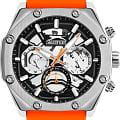 Мужские кварцевые часы Slazenger SL.09.2319.2.07 — это выразительный и функциональный аксессуар, сочетающий стиль, технологичность и насыщенную комплектацию. Корпус выполнен из суперметалла, а циферблат частично скелетонизирован и выполнен в серебристо-чёрных тонах, что позволяет наблюдать за работой механизма. Циферблат защищён минеральным стекломМинеральное стеклоМинеральное стекло представляет собой искусственно выращенный минерал кварца. Такое стекло отличается особой устойчивостью к повреждениям и царапинам. Уступает по некоторым качествам сапфировому стеклу. и дополнен вынесенными малыми циферблатами для индикации дня недели, даты и времени в 24-часовом формате. Стрелки и метки оснащены люминесцентным покрытиемЛюминесцентное покрытиеПозволяет считывать показания времени в темноте. Производители наносят на стрелки, часовые индексы, безель или поверхность циферблата светонакопительный состав, дающий холодное свечение., обеспечивающим хорошую читаемость в темноте. Удобный силиконовый ремешок оранжевого цвета фиксируется на классической пряжке. Водонепроницаемость 50 м позволяет использовать часы в повседневных условиях, защищая от случайных брызг и капель дождя. Модель подчёркивает индивидуальность владельца и идеально подходит как для повседневного, так и для спортивного образа.