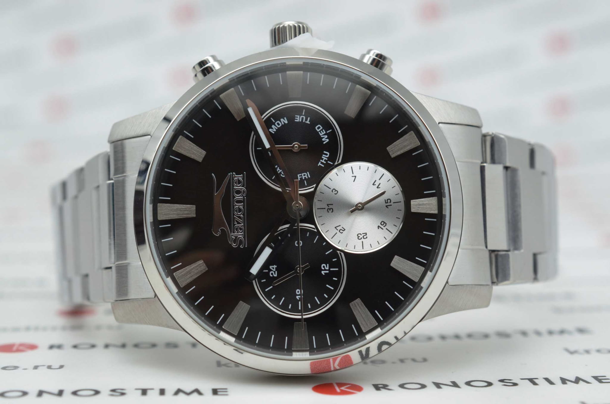 Мужские кварцевые часы Slazenger SL.09.2356.2.03 – идеальное сочетание классического дизайна и современных технологий, созданное для уверенных в себе мужчин. Корпус выполнен из нержавеющей стали серебристого цвета, диаметром 44 мм и толщиной 13 мм, подчёркивает надежность модели и делает их идеальным аксессуаром для любой ситуации – будь то деловая встреча или повседневные выходы. Циферблат надёжно защищён минеральным стекломМинеральное стеклоМинеральное стекло представляет собой искусственно выращенный минерал кварца. Такое стекло отличается особой устойчивостью к повреждениям и царапинам. Уступает по некоторым качествам сапфировому стеклу., которое устойчиво к механическим повреждениям и сохраняет кристальную прозрачность. Стальной браслет удобно облегает запястье и фиксируется с помощью раскладной застёжкиРаскладная застёжкаТакой тип застёжки используется только на браслетах из металла. Она никогда не раскрывается полностью, происходит разделение на 2 и более частей. Раскладывающая застёжка снизит вероятность потери часов к минимуму., обеспечивая надёжность и комфорт в повседневном ношении. Стрелки покрыты люминесцентным покрытиемЛюминесцентное покрытиеПозволяет считывать показания времени в темноте. Производители наносят на стрелки, часовые индексы, безель или поверхность циферблата светонакопительный состав, дающий холодное свечение., обеспечивающим отличную читаемость в темноте. Эти часы станут не просто аксессуаром, а надежным спутником в любой ситуации, подчеркивая ваш безупречный вкус и деловой стиль. Вынесенный циферблат с 24-х часовым указателем времени. Водозащита 100 метров позволит плавать, нырять и заниматься другими водными видами спорта.