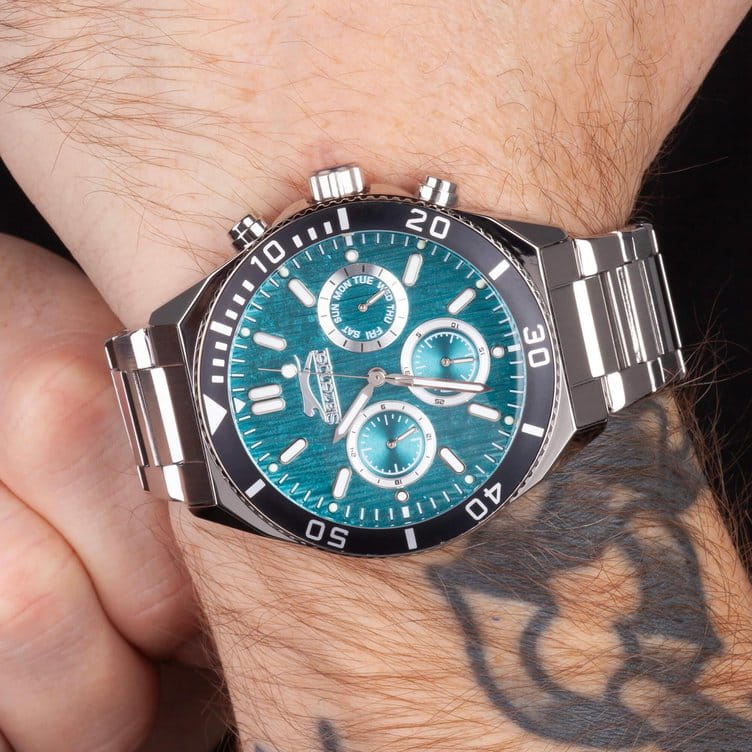 Мужские кварцевые часы Slazenger SL.09.2370.2.03 – идеальное сочетание классического дизайна и современных технологий, созданное для уверенных в себе мужчин. Корпус выполнен из суперметалла серебристого цвета, диаметром 44.5 мм и толщиной 13 мм, подчёркивает надежность модели и делает их идеальным аксессуаром для любой ситуации – будь то деловая встреча или повседневные выходы. Циферблат надёжно защищён минеральным стекломМинеральное стеклоМинеральное стекло представляет собой искусственно выращенный минерал кварца. Такое стекло отличается особой устойчивостью к повреждениям и царапинам. Уступает по некоторым качествам сапфировому стеклу., которое устойчиво к механическим повреждениям и сохраняет кристальную прозрачность. БезельБезельВнешний ободок, закрепляющий стекло. В спортивных часах так называется поворотное кольцо с делениями на циферблате, выполняет роль таймера – замеряет отрезки времени на шкале. Неподвижный безель – элемент декора. Однонаправленно вращающийся безель на дайверских часах позволяет фиксировать моменты погружения и выныривания на поверхность. с IP-покрытиемIP-покрытиеМетод ионного напыления. Демонстрирует повышенную устойчивость к истиранию, окислению и химическим веществам. Под воздействием высокого давления и температуры около 1500°C молекулы металла надёжно соединяются с частицами корпуса часов. черного цвета. Стальной браслет удобно облегает запястье и фиксируется с помощью раскладной застёжкиРаскладная застёжкаТакой тип застёжки используется только на браслетах из металла. Она никогда не раскрывается полностью, происходит разделение на 2 и более частей. Раскладывающая застёжка снизит вероятность потери часов к минимуму., обеспечивая надёжность и комфорт в повседневном ношении. Стрелки и метки покрыты люминесцентным покрытиемЛюминесцентное покрытиеПозволяет считывать показания времени в темноте. Производители наносят на стрелки, часовые индексы, безель или поверхность циферблата светонакопительный состав, дающий холодное свечение., обеспечивающим отличную читаемость в темноте. Эти часы станут не просто аксессуаром, а надежным спутником в любой ситуации, подчеркивая ваш безупречный вкус и деловой стиль. Вынесенный циферблат с 24-х часовым указателем времени. Водозащита 50 метров позволит защитить корпус от случайных брызг или капель дождя.