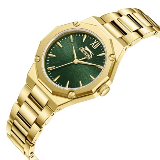 Женские кварцевые часы Slazenger SL.09.2374.3.04 – это сочетание элегантности, современного стиля и надёжности. Изящный корпус из суперметалла с IP-покрытиемIP-покрытиеМетод ионного напыления. Демонстрирует повышенную устойчивость к истиранию, окислению и химическим веществам. Под воздействием высокого давления и температуры около 1500°C молекулы металла надёжно соединяются с частицами корпуса часов. золотистого цвета, диаметром 30 мм и толщиной 7 мм, подчёркивает утончённость модели и делает их идеальным аксессуаром для любой ситуации – будь то деловая встреча, романтический вечер или повседневные выходы. Циферблат надёжно защищён минеральным стекломМинеральное стеклоМинеральное стекло представляет собой искусственно выращенный минерал кварца. Такое стекло отличается особой устойчивостью к повреждениям и царапинам. Уступает по некоторым качествам сапфировому стеклу., которое устойчиво к механическим повреждениям и сохраняет кристальную прозрачность. Браслет из суперметалла с IP-покрытиемIP-покрытиеМетод ионного напыления. Демонстрирует повышенную устойчивость к истиранию, окислению и химическим веществам. Под воздействием высокого давления и температуры около 1500°C молекулы металла надёжно соединяются с частицами корпуса часов. удобно облегает запястье и фиксируется с помощью раскладной застёжкиРаскладная застёжкаТакой тип застёжки используется только на браслетах из металла. Она никогда не раскрывается полностью, происходит разделение на 2 и более частей. Раскладывающая застёжка снизит вероятность потери часов к минимуму., обеспечивая надёжность и комфорт в повседневном ношении. Утончённый стиль, внимание к деталям и практичность делают эту модель идеальным выбором для современных женщин, ценящих эстетику и функциональность. Водозащита до 30 метров позволит защитить корпус от случайных брызг или капель дождя.