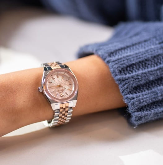 Женские кварцевые часы Slazenger SL.09.2376.3.03 – это сочетание элегантности, современного стиля и надёжности. Изящный корпус из суперметалла серебристого цвета, диаметром 32 мм и толщиной 9 мм, подчёркивает утончённость модели и делает их идеальным аксессуаром для любой ситуации – будь то деловая встреча, романтический вечер или повседневные выходы. Циферблат надёжно защищён минеральным стекломМинеральное стеклоМинеральное стекло представляет собой искусственно выращенный минерал кварца. Такое стекло отличается особой устойчивостью к повреждениям и царапинам. Уступает по некоторым качествам сапфировому стеклу., которое устойчиво к механическим повреждениям и сохраняет кристальную прозрачность. Неподвижный безельБезельВнешний ободок, закрепляющий стекло. В спортивных часах так называется поворотное кольцо с делениями на циферблате, выполняет роль таймера – замеряет отрезки времени на шкале. Неподвижный безель – элемент декора. Однонаправленно вращающийся безель на дайверских часах позволяет фиксировать моменты погружения и выныривания на поверхность. с IP-покрытиемIP-покрытиеМетод ионного напыления. Демонстрирует повышенную устойчивость к истиранию, окислению и химическим веществам. Под воздействием высокого давления и температуры около 1500°C молекулы металла надёжно соединяются с частицами корпуса часов. цвета розового золота. Браслет из суперметалла с частичным IP-покрытиемIP-покрытиеМетод ионного напыления. Демонстрирует повышенную устойчивость к истиранию, окислению и химическим веществам. Под воздействием высокого давления и температуры около 1500°C молекулы металла надёжно соединяются с частицами корпуса часов. удобно облегает запястье и фиксируется с помощью раскладной застёжкиРаскладная застёжкаТакой тип застёжки используется только на браслетах из металла. Она никогда не раскрывается полностью, происходит разделение на 2 и более частей. Раскладывающая застёжка снизит вероятность потери часов к минимуму., обеспечивая надёжность и комфорт в повседневном ношении. Утончённый стиль, внимание к деталям и практичность делают эту модель идеальным выбором для современных женщин, ценящих эстетику и функциональность. Метки покрыты люминесцентным покрытиемЛюминесцентное покрытиеПозволяет считывать показания времени в темноте. Производители наносят на стрелки, часовые индексы, безель или поверхность циферблата светонакопительный состав, дающий холодное свечение., обеспечивающим отличную читаемость в темноте. Водозащита до 30 метров позволит защитить корпус от случайных брызг или капель дождя.