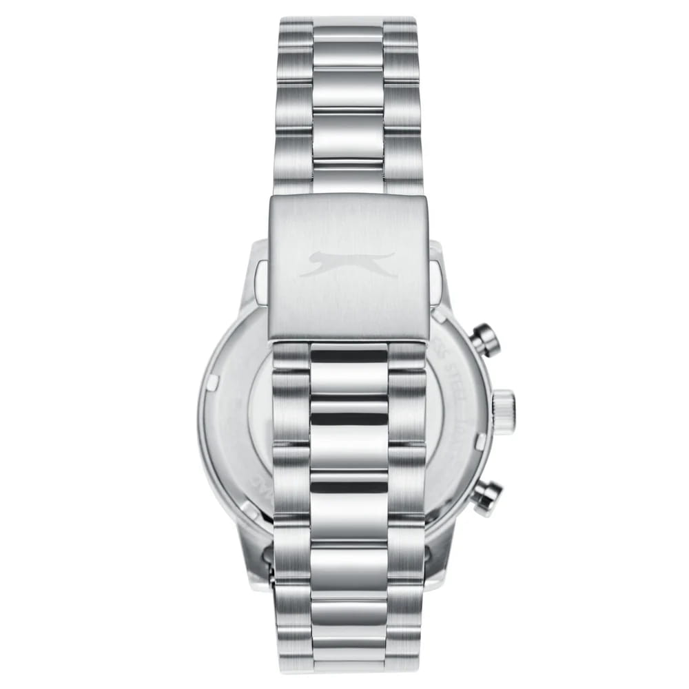 Мужские кварцевые часы Slazenger — это выразительный и функциональный аксессуар. Корпус диаметром 42 мм и толщиной 12 мм выполнен из нержавеющей стали 316L. Циферблат чёрного цвета оформлен индексами и стрелками. Окошко даты расположено на отметке в 6 часов. Указатель дня недели и 24-часовой формат времени вынесены на отдельные субциферблаты. Циферблат защищён минеральным стекломМинеральное стеклоМинеральное стекло представляет собой искусственно выращенный минерал кварца. Такое стекло отличается особой устойчивостью к повреждениям и царапинам. Уступает по некоторым качествам сапфировому стеклу.. Механизм — кварцевый калибр JP25. Часы оснащены функцией второго часового пояса (GMT)Второй часовой поясФункция, позволяющая отображать время двух часовых поясов одновременно.. Стрелки и метки с люминесцентным покрытиемЛюминесцентное покрытиеПозволяет считывать показания времени в темноте. Производители наносят на стрелки, часовые индексы, безель или поверхность циферблата светонакопительный состав, дающий холодное свечение., обеспечивающим хорошую читаемость в темноте. Часы оснащены стальным браслетом с раскладной застёжкойРаскладная застёжкаТакой тип застёжки используется только на браслетах из металла. Она никогда не раскрывается полностью, происходит разделение на 2 и более частей. Раскладывающая застёжка снизит вероятность потери часов к минимуму.. Водонепроницаемость 100 м позволяет использовать часы для плавания и повседневного ношения. Гарантия — 12 месяцев. Идеальный выбор для тех, кто ценит стиль, функциональность и качество.