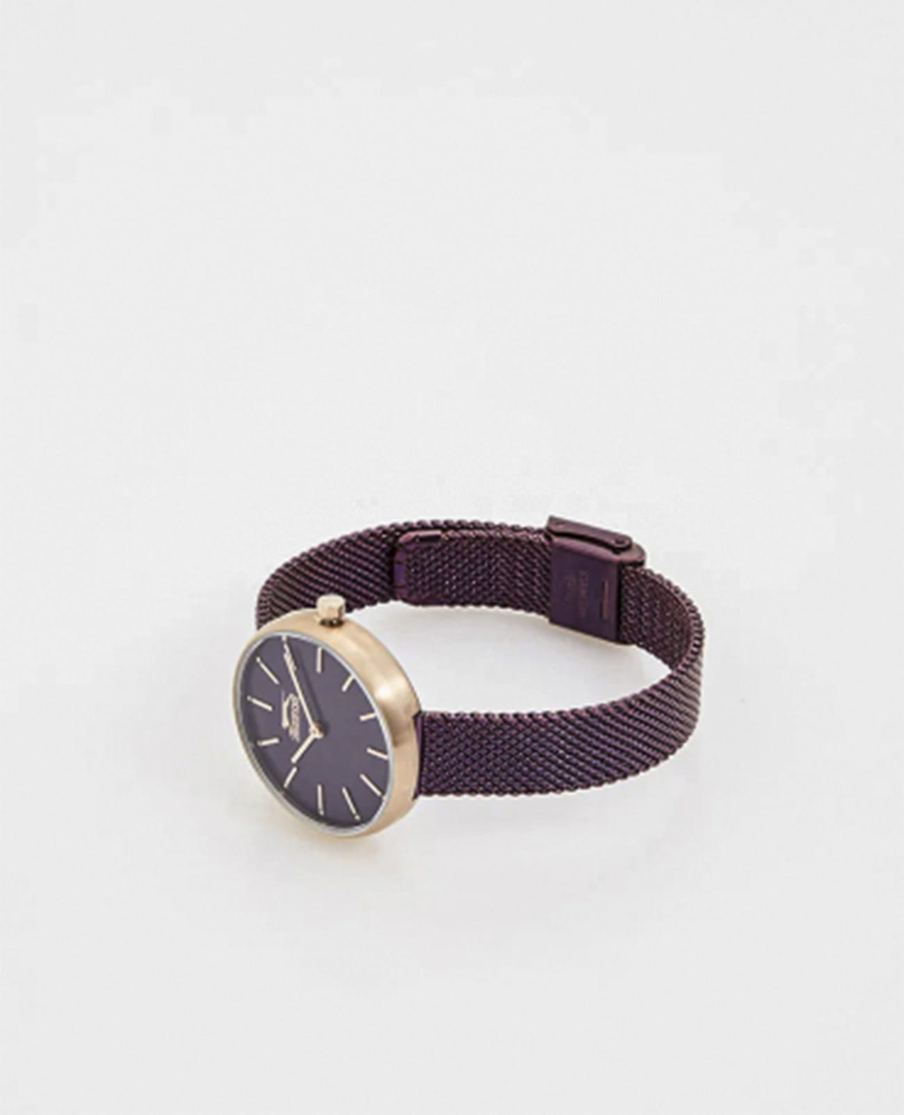Женские кварцевые часы Slazenger — это стильный аксессуар с круглым корпусом и изящным браслетом миланского плетения. Корпус диаметром 30 мм и толщиной 8 мм выполнен из суперметалла с IP-покрытиемIP-покрытиеМетод ионного напыления. Демонстрирует повышенную устойчивость к истиранию, окислению и химическим веществам. Под воздействием высокого давления и температуры около 1500°C молекулы металла надёжно соединяются с частицами корпуса часов.. Циферблат фиолетового цвета оформлен индексами и стрелками. Циферблат защищён минеральным стекломМинеральное стеклоМинеральное стекло представляет собой искусственно выращенный минерал кварца. Такое стекло отличается особой устойчивостью к повреждениям и царапинам. Уступает по некоторым качествам сапфировому стеклу.. Механизм — кварцевый. Часы оснащены браслетом из суперметалла миланского плетения с раскладной застёжкойРаскладная застёжкаТакой тип застёжки используется только на браслетах из металла. Она никогда не раскрывается полностью, происходит разделение на 2 и более частей. Раскладывающая застёжка снизит вероятность потери часов к минимуму.. Водонепроницаемость 30 м позволяет использовать часы в повседневных условиях. Идеальный выбор для тех, кто ценит элегантность и качество.