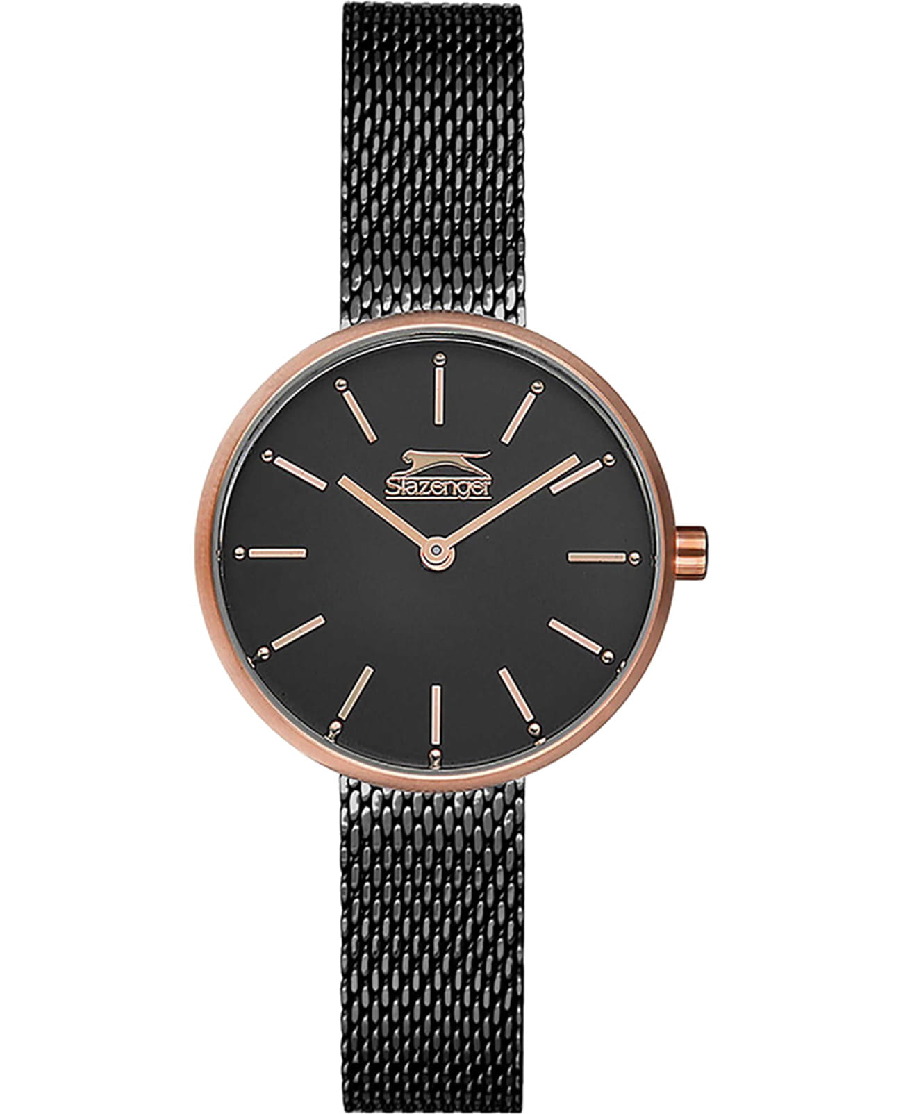 Женские кварцевые часы Slazenger — это стильный аксессуар с круглым корпусом и изящным браслетом миланского плетения. Корпус диаметром 30 мм и толщиной 8 мм выполнен из суперметалла с IP-покрытиемIP-покрытиеМетод ионного напыления. Демонстрирует повышенную устойчивость к истиранию, окислению и химическим веществам. Под воздействием высокого давления и температуры около 1500°C молекулы металла надёжно соединяются с частицами корпуса часов.. Циферблат чёрного цвета оформлен индексами и стрелками. Циферблат защищён минеральным стекломМинеральное стеклоМинеральное стекло представляет собой искусственно выращенный минерал кварца. Такое стекло отличается особой устойчивостью к повреждениям и царапинам. Уступает по некоторым качествам сапфировому стеклу.. Механизм — кварцевый. Часы оснащены браслетом из суперметалла миланского плетения с раскладной застёжкойРаскладная застёжкаТакой тип застёжки используется только на браслетах из металла. Она никогда не раскрывается полностью, происходит разделение на 2 и более частей. Раскладывающая застёжка снизит вероятность потери часов к минимуму.. Водонепроницаемость 30 м позволяет использовать часы в повседневных условиях. Идеальный выбор для тех, кто ценит элегантность и качество.