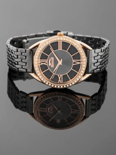 Женские кварцевые часы Slazenger SL.09.6537.3.04 – это сочетание элегантности, современного стиля и надёжности. Изящный корпус из суперметалла с IP-покрытиемIP-покрытиеМетод ионного напыления. Демонстрирует повышенную устойчивость к истиранию, окислению и химическим веществам. Под воздействием высокого давления и температуры около 1500°C молекулы металла надёжно соединяются с частицами корпуса часов. цвета розового золота, диаметром 35 мм и толщиной 9 мм, подчёркивает утончённость модели и делает их идеальным аксессуаром для любой ситуации – будь то деловая встреча, романтический вечер или повседневные выходы. Циферблат надёжно защищён минеральным стекломМинеральное стеклоМинеральное стекло представляет собой искусственно выращенный минерал кварца. Такое стекло отличается особой устойчивостью к повреждениям и царапинам. Уступает по некоторым качествам сапфировому стеклу., которое устойчиво к механическим повреждениям и сохраняет кристальную прозрачность. БезельБезельВнешний ободок, закрепляющий стекло. В спортивных часах так называется поворотное кольцо с делениями на циферблате, выполняет роль таймера – замеряет отрезки времени на шкале. Неподвижный безель – элемент декора. Однонаправленно вращающийся безель на дайверских часах позволяет фиксировать моменты погружения и выныривания на поверхность. украшен фианитами. Браслет из суперметалла с IP-покрытиемIP-покрытиеМетод ионного напыления. Демонстрирует повышенную устойчивость к истиранию, окислению и химическим веществам. Под воздействием высокого давления и температуры около 1500°C молекулы металла надёжно соединяются с частицами корпуса часов. удобно облегает запястье и фиксируется с помощью раскладной застёжкиРаскладная застёжкаТакой тип застёжки используется только на браслетах из металла. Она никогда не раскрывается полностью, происходит разделение на 2 и более частей. Раскладывающая застёжка снизит вероятность потери часов к минимуму., обеспечивая надёжность и комфорт в повседневном ношении. Утончённый стиль, внимание к деталям и практичность делают эту модель идеальным выбором для современных женщин, ценящих эстетику и функциональность. Водозащита до 30 метров позволит защитить корпус от случайных брызг или капель дождя.