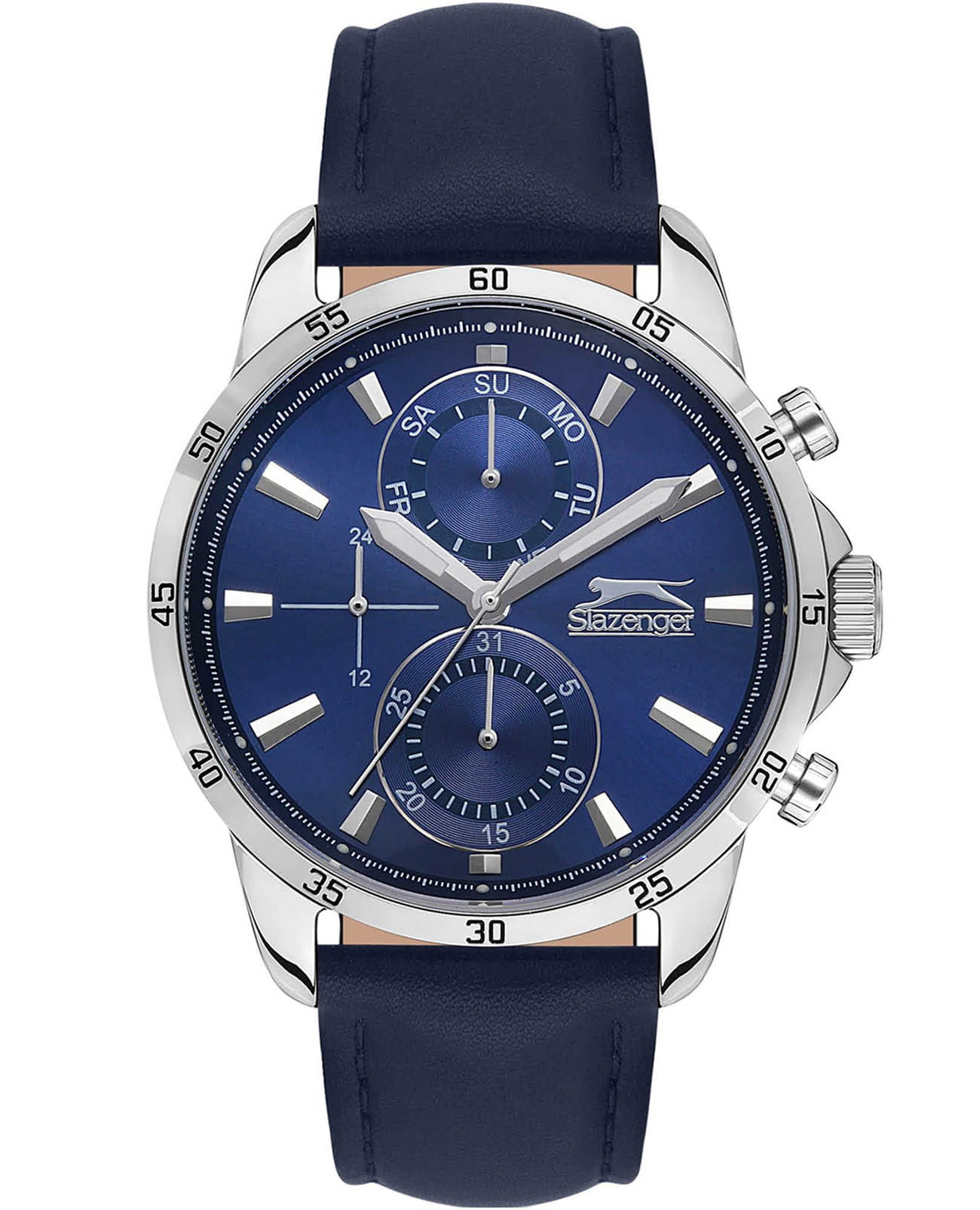 Часы Slazenger SL.09.6548.2.03 — это стильный и надежный аксессуар, который подчеркивает индивидуальность своего владельца. Изысканный корпус выполнен из прочного суперметалла, а синий ремень сделан из кожи. Стильный циферблат надежно защищен минеральным стекломМинеральное стеклоМинеральное стекло представляет собой искусственно выращенный минерал кварца. Такое стекло отличается особой устойчивостью к повреждениям и царапинам. Уступает по некоторым качествам сапфировому стеклу., устойчивым к царапинам и механическим повреждениям. Модель оснащена кварцевым механизмом, что гарантирует высокую точность хода. На отдельные циферблаты вынесены указатели 24-часового времени, даты и дня недели, что делает использование часов особенно удобным в повседневной жизни. Ремень со стандартной застежкой, обеспечивающей комфортную посадку. Водозащита 5 АТМ позволяет не беспокоиться о случайных брызгах или дожде. Часы с люминесцентным покрытиемЛюминесцентное покрытиеПозволяет считывать показания времени в темноте. Производители наносят на стрелки, часовые индексы, безель или поверхность циферблата светонакопительный состав, дающий холодное свечение. удобно подсвечиваются в темноте после зарядки на свету. Диаметр корпуса составляет 44 мм, толщина — 12 мм, что обеспечивает комфортное ношение на запястье. Часы станут отличным выбором для повседневного использования или дополнения к деловому образу, а также послужат отличным подарком на любой праздник.
