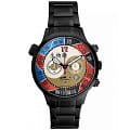 Внутри установлен кварцевый механизм, обеспечивающий высокую точность хода. Функции хронографаХронографФункция позволяет измерять отрезки времени с особой точностью: часы, минуты, секунды. Верным признаком хронографа является наличие на циферблате 3 дополнительных окошек-счётчиков. включают секундомер до 1 часа, отображение даты и 12- и 24-часовой формат времени.
