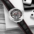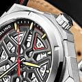 Stuhrling 379.01 — футуристические мужские часы, сочетающие смелый инженерный дизайн и надёжную механику. Архитектурный циферблат с многослойной структурой придаёт модели динамику и глубину. Стрелки и метки с люминесцентным покрытиемЛюминесцентное покрытиеПозволяет считывать показания времени в темноте. Производители наносят на стрелки, часовые индексы, безель или поверхность циферблата светонакопительный состав, дающий холодное свечение.. Корпус из нержавеющей стали выполнен с филигранной обработкой граней, подчёркивая технический характер часов. Прочное стекло KrysternaKrysternaKrysterna — инновационное стекло для наручных часов. Благодаря уникальной структуре, Krysterna объединяет ключевые преимущества двух материалов: твердость сапфира, защищающую от царапин, и гибкость минерального стекла, обеспечивающую устойчивость к деформациям. Такая комбинация делает его идеальным решением для часов, подверженных экстремальным нагрузкам, сохраняя при этом оптическую прозрачность. защищает сложную конструкцию от повреждений, сохраняя идеальную прозрачность. Кожаный ремень с контрастной строчкой и стандартной застежкой, обеспечивает комфорт и надёжную посадку. Stuhrling — выбор для тех, кто ценит оригинальность и технологичный стиль, где каждая деталь работает на впечатление.