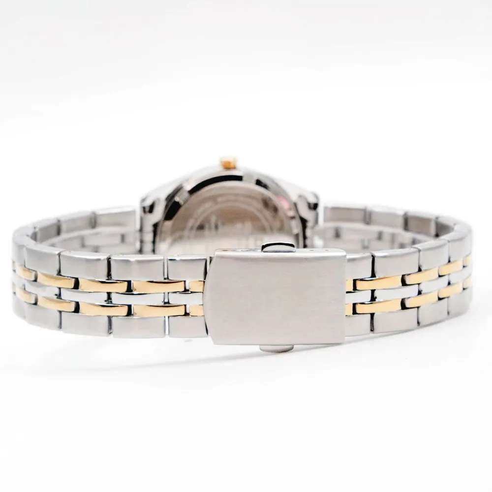 Женские швейцарские наручные часы Swiss Military by Chrono SM34066.09, кварцевый механизм с высокой точностью. Минеральное стеклоМинеральное стеклоМинеральное стекло представляет собой искусственно выращенный минерал кварца. Такое стекло отличается особой устойчивостью к повреждениям и царапинам. Уступает по некоторым качествам сапфировому стеклу. устойчивое к появлению царапин, обладающее высокой прозрачностью. Класс водозащиты: 50 метров, позволит защитить корпус от случайных брызг или капель дождя. Корпус часов изготовлен из стали.БезельБезельВнешний ободок, закрепляющий стекло. В спортивных часах так называется поворотное кольцо с делениями на циферблате, выполняет роль таймера – замеряет отрезки времени на шкале. Неподвижный безель – элемент декора. Однонаправленно вращающийся безель на дайверских часах позволяет фиксировать моменты погружения и выныривания на поверхность. с PVD-покрытиемPVDУльтратонкое покрытие наносится в технике вакуумного напыления, сочетает в себе нитрид титана особой прочности со слоем золота или оксида хрома. Несёт в себе декоративную или защитную функцию.. Браслет с раскладной застёжкойРаскладная застёжкаТакой тип застёжки используется только на браслетах из металла. Она никогда не раскрывается полностью, происходит разделение на 2 и более частей. Раскладывающая застёжка снизит вероятность потери часов к минимуму. и с частичным PVD-покрытиемPVDУльтратонкое покрытие наносится в технике вакуумного напыления, сочетает в себе нитрид титана особой прочности со слоем золота или оксида хрома. Несёт в себе декоративную или защитную функцию..