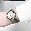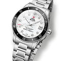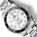 Кварцевый механизм с высокой точностью. Минеральное стеклоМинеральное стеклоМинеральное стекло представляет собой искусственно выращенный минерал кварца. Такое стекло отличается особой устойчивостью к повреждениям и царапинам. Уступает по некоторым качествам сапфировому стеклу. устойчивое к появлению царапин, обладающее высокой прозрачностью. Стрелки с люминесцентным покрытиемЛюминесцентное покрытиеПозволяет считывать показания времени в темноте. Производители наносят на стрелки, часовые индексы, безель или поверхность циферблата светонакопительный состав, дающий холодное свечение.. БезельБезельВнешний ободок, закрепляющий стекло. В спортивных часах так называется поворотное кольцо с делениями на циферблате, выполняет роль таймера – замеряет отрезки времени на шкале. Неподвижный безель – элемент декора. Однонаправленно вращающийся безель на дайверских часах позволяет фиксировать моменты погружения и выныривания на поверхность. вращающийся с PVD-покрытиемPVDУльтратонкое покрытие наносится в технике вакуумного напыления, сочетает в себе нитрид титана особой прочности со слоем золота или оксида хрома. Несёт в себе декоративную или защитную функцию.. Индексы украшены кристаллами. Класс водозащиты: 200 метров, позволит плавать, нырять и заниматься другими водными видами спорта. Корпус часов изготовлен из нержавеющей стали. Браслет с раскладной застёжкойРаскладная застёжкаТакой тип застёжки используется только на браслетах из металла. Она никогда не раскрывается полностью, происходит разделение на 2 и более частей. Раскладывающая застёжка снизит вероятность потери часов к минимуму..