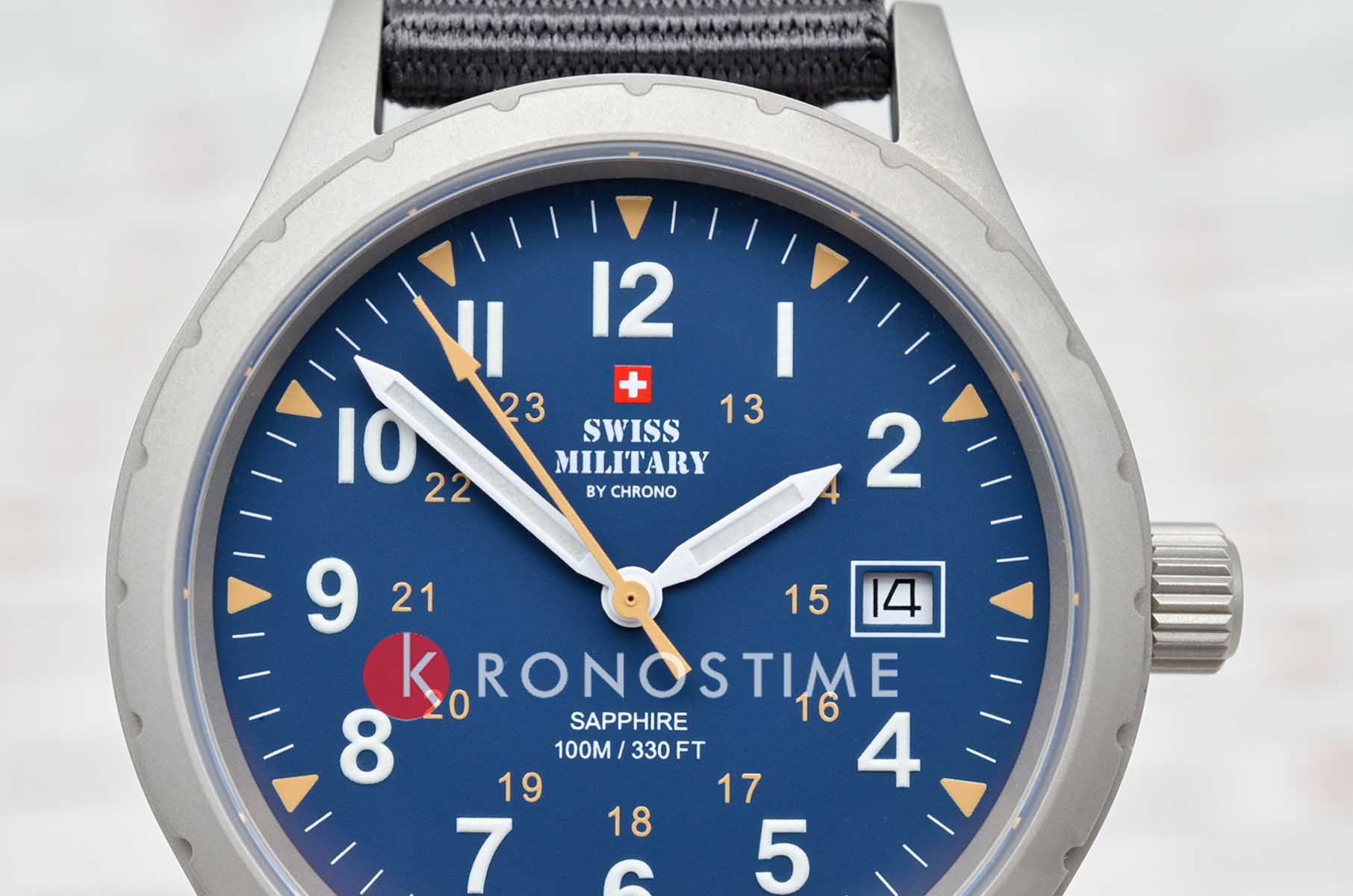 Модель SM34108.05 от Swiss Military by Chrono — это надёжные швейцарские часы в классическом армейском стиле, сочетающие функциональность и сдержанный дизайн. Корпус выполнен из нержавеющей стали с PVD-покрытиемPVDУльтратонкое покрытие наносится в технике вакуумного напыления, сочетает в себе нитрид титана особой прочности со слоем золота или оксида хрома. Несёт в себе декоративную или защитную функцию., подчёркивая прочность и элегантность конструкции. Циферблат с арабскими цифрами обеспечивает отличную читаемость, а функция отображения даты добавляет практичности. Часы оснащены кварцевым механизмом, обеспечивающим точный ход. Циферблат защищён сапфировым стекломСапфировое стеклоПрочный и надёжный материал из кристалла сапфира синтетического происхождения, характеризующийся особой твёрдостью и устойчивостью к царапинам и повреждениям., устойчивым к царапинам. Тканевый ремешок на стандартной застежке для надёжной фиксации на запястье. Модель обладает водонепроницаемостью до 100 метров, что делает её подходящей для плавания и сноркелинга.