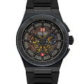 Мужские швейцарские часы-хронографХронографФункция позволяет измерять отрезки времени с особой точностью: часы, минуты, секунды. Верным признаком хронографа является наличие на циферблате 3 дополнительных окошек-счётчиков. Swiss Military Hanowa SMWGO0000940, кварцевый механизм с высокой точностью. Сапфировое стеклоСапфировое стеклоПрочный и надёжный материал из кристалла сапфира синтетического происхождения, характеризующийся особой твёрдостью и устойчивостью к царапинам и повреждениям. устойчивое к появлению царапин, обладающее высокой прозрачностью. Корпус часов изготовлен из нержавеющей стали с PVDPVDУльтратонкое покрытие наносится в технике вакуумного напыления, сочетает в себе нитрид титана особой прочности со слоем золота или оксида хрома. Несёт в себе декоративную или защитную функцию. покрытием. Скелетонизированный циферблат. Стрелки с люминесцентным покрытиемЛюминесцентное покрытиеПозволяет считывать показания времени в темноте. Производители наносят на стрелки, часовые индексы, безель или поверхность циферблата светонакопительный состав, дающий холодное свечение.. Окошко даты в положении 6 часов. Класс водозащиты: 100 метров, позволит плавать, нырять и заниматься другими водными видами спорта. Каучуковый ремешок на стандартной застежке.