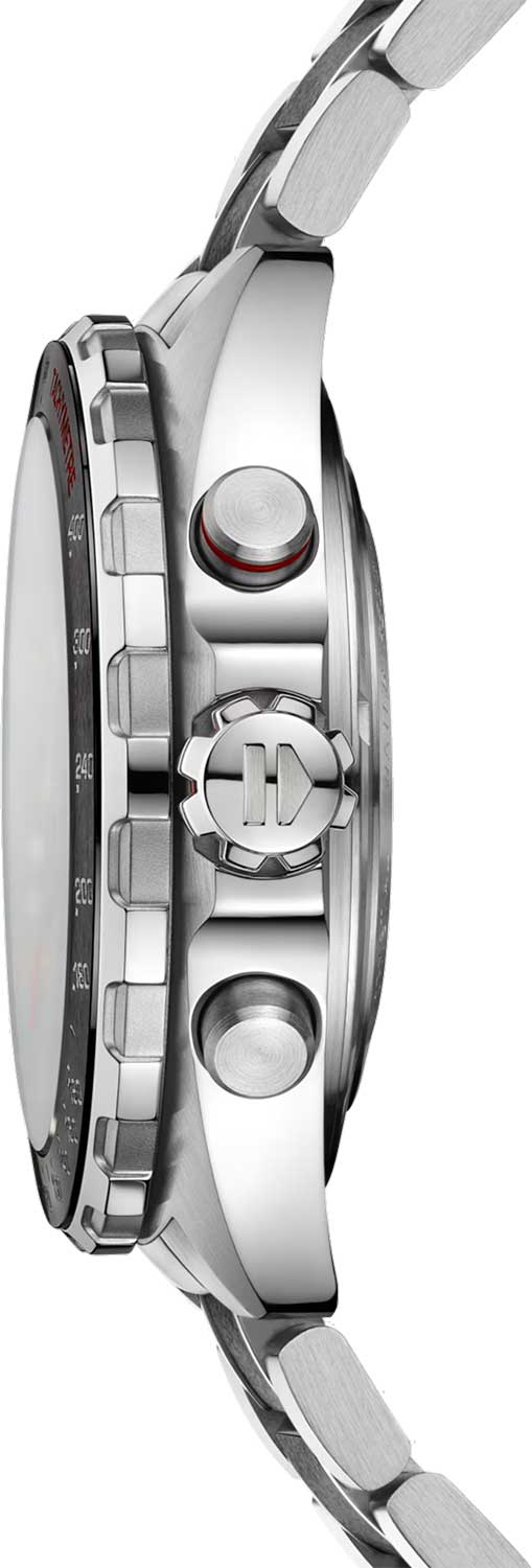 Мужские механические часы TAG Heuer Formula 1 Chronograph CAZ2012.BA0970 — это стильное сочетание элегантности и современного дизайна. Корпус из нержавеющей стали диаметром 44 мм идеально сбалансирован и элегантен. Сапфировое стеклоСапфировое стеклоПрочный и надёжный материал из кристалла сапфира синтетического происхождения, характеризующийся особой твёрдостью и устойчивостью к царапинам и повреждениям. с антибликовым покрытием защищает циферблат от царапин и обеспечивает отличную читаемость при любом освещении. Стальной браслет на раскладной застёжкеРаскладная застёжкаТакой тип застёжки используется только на браслетах из металла. Она никогда не раскрывается полностью, происходит разделение на 2 и более частей. Раскладывающая застёжка снизит вероятность потери часов к минимуму. идеально дополняют дизайн часов, обеспечивая комфортное ношение. Стрелки и метки на циферблате имеют люминесцентное покрытиеЛюминесцентное покрытиеПозволяет считывать показания времени в темноте. Производители наносят на стрелки, часовые индексы, безель или поверхность циферблата светонакопительный состав, дающий холодное свечение. позволяющее легко определять время даже в темноте. БезельБезельВнешний ободок, закрепляющий стекло. В спортивных часах так называется поворотное кольцо с делениями на циферблате, выполняет роль таймера – замеряет отрезки времени на шкале. Неподвижный безель – элемент декора. Однонаправленно вращающийся безель на дайверских часах позволяет фиксировать моменты погружения и выныривания на поверхность. тахиметраТахиметрРазмеченная шкала, располагается на ободке или безеле часов. Тахиметр позволяет рассчитать скорость на определённом участке пути, расстояние измеряется в километрах или милях. подчёркивает спортивное наследие часов. Часы обладают впечатляющей водонепроницаемостью до 20 бар (200 метров), что делает их идеальными для плавания, ныряния и погружений с аквалангом. Автоматический хронографХронографФункция позволяет измерять отрезки времени с особой точностью: часы, минуты, секунды. Верным признаком хронографа является наличие на циферблате 3 дополнительных окошек-счётчиков. обеспечивает точное измерение времени на каждом круге. Запас хода до 42 часов. Завинчивающаяся задняя крышка украшена специальным узором «клетка». Прочная конструкция часов и высокопроизводительный механизм делают их идеальным спутником для любителей гонок.