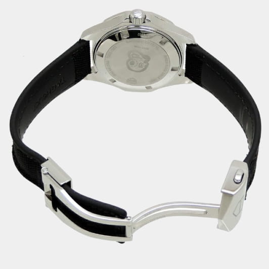 TAG Heuer Aquaracer WAY131M.FT6092 — элегантные женские часы, сочетающие стиль и функциональность. Корпус диаметром 35 мм выполнен из полированной нержавеющей стали, обеспечивая долговечность и устойчивость к коррозии. Чёрный циферблат из перламутра украшен 11 бриллиантовыми часовыми метками общим весом 0,100 карата, придающими часам роскошный акцент, а его поверхность защищена сапфировым стекломСапфировое стеклоПрочный и надёжный материал из кристалла сапфира синтетического происхождения, характеризующийся особой твёрдостью и устойчивостью к царапинам и повреждениям., устойчивым к царапинам. Часы оснащены точным кварцевым механизмом, обеспечивающим стабильное отображение времени. Функциональность включает индикацию часов, минут, секунд и даты, расположенной на отметке «3 часа». БезельБезельВнешний ободок, закрепляющий стекло. В спортивных часах так называется поворотное кольцо с делениями на циферблате, выполняет роль таймера – замеряет отрезки времени на шкале. Неподвижный безель – элемент декора. Однонаправленно вращающийся безель на дайверских часах позволяет фиксировать моменты погружения и выныривания на поверхность. однонаправленный вращающийся, выполнен из чёрной керамики и стали, устойчивой к царапинам. Водозащита до 300 метров (30 бар) делает модель подходящей для дайвинга и активного образа жизни. Чёрный нейлоновый ремешок с резиновым покрытием оснащён раскладной застёжкойРаскладная застёжкаТакой тип застёжки используется только на браслетах из металла. Она никогда не раскрывается полностью, происходит разделение на 2 и более частей. Раскладывающая застёжка снизит вероятность потери часов к минимуму. из нержавеющей стали с кнопками для дополнительной безопасности.