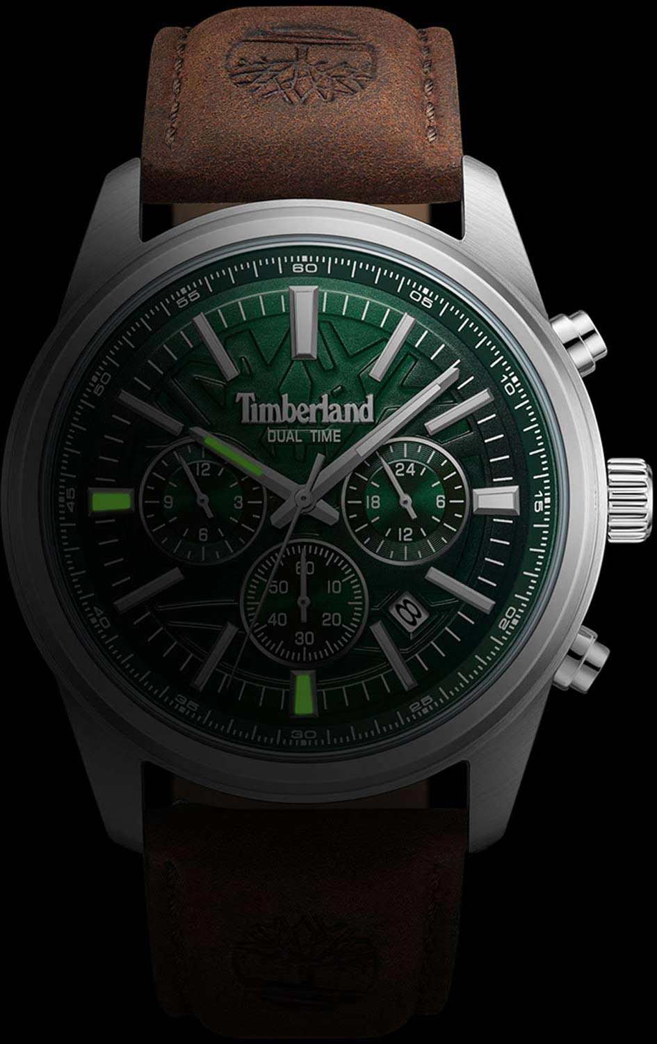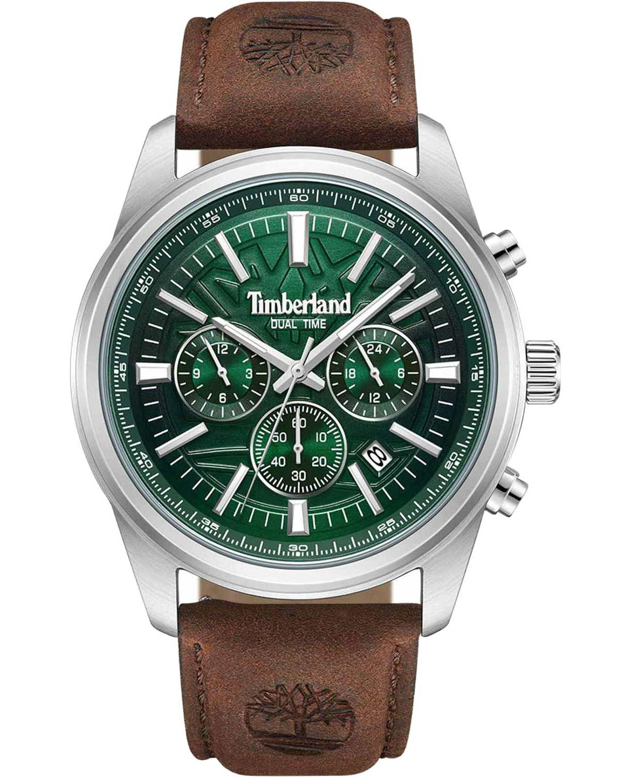 Американские мужские часы Timberland Northbridge TDWGF0041206 c хронографомХронографФункция позволяет измерять отрезки времени с особой точностью: часы, минуты, секунды. Верным признаком хронографа является наличие на циферблате 3 дополнительных окошек-счётчиков. имеют кварцевый механизм с высокой точностью. Класс водозащиты: 50 метров, позволит защитить корпус от случайных брызг или капель дождя. Корпус часов изготовлен из стали. Прочное минеральное стеклоМинеральное стеклоМинеральное стекло представляет собой искусственно выращенный минерал кварца. Такое стекло отличается особой устойчивостью к повреждениям и царапинам. Уступает по некоторым качествам сапфировому стеклу.. Стрелки c люминесцентным покрытиемЛюминесцентное покрытиеПозволяет считывать показания времени в темноте. Производители наносят на стрелки, часовые индексы, безель или поверхность циферблата светонакопительный состав, дающий холодное свечение.. Кожаный ремешок на стандартной застежке.