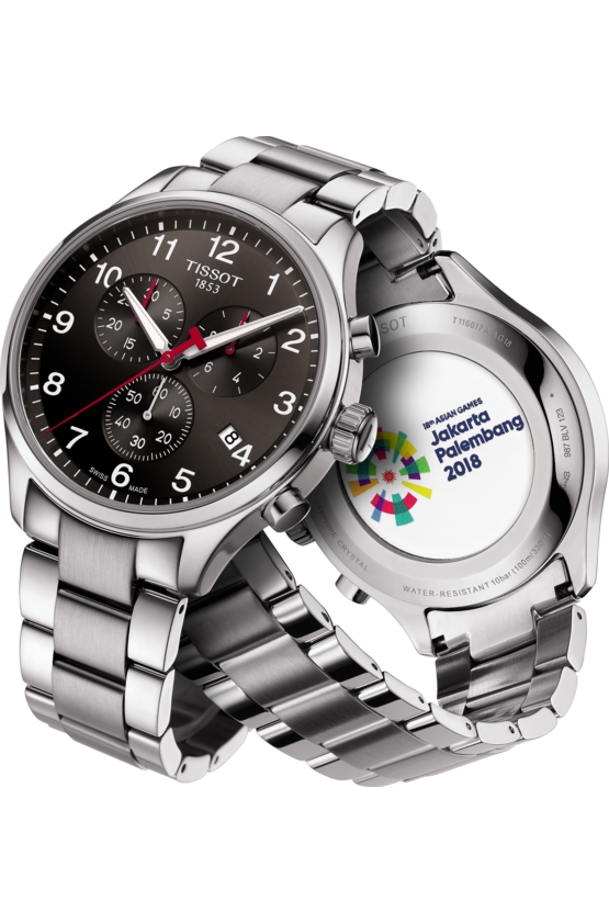 Tissot Chrono XL Classic - отличные часы для тех, кто ищет спортивный и элегантный хронограф Логотип 18 Азиатских игр выгравирован на задней крышке часов, изображено второе по величине событие в мире мультиспорта