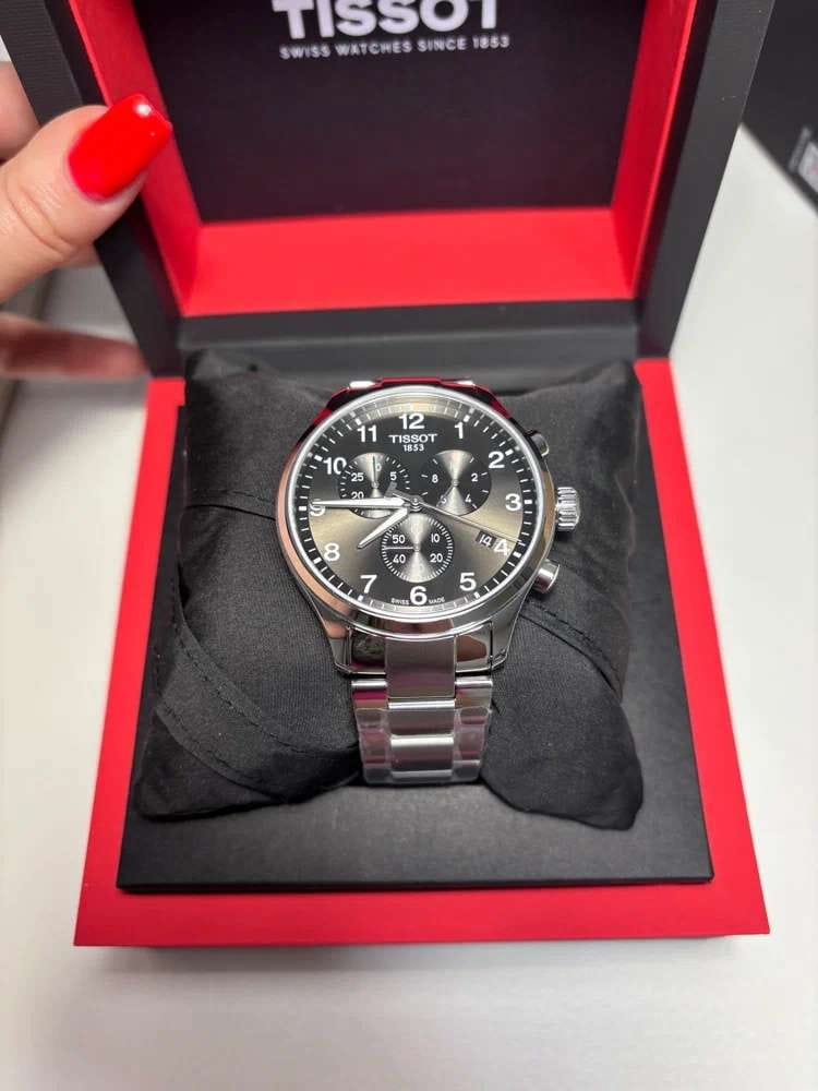 Наручные часы относятся к категории самых больших хронографов Tissot, диаметр их корпуса составляет 45 мм. Такая модель подчеркнёт любой образ и позволит выделяться среди окружающих. Циферблат в чёрном цвете отличается лаконичным исполнением, люминесцентное покрытие облегчает пользование часами в темноте. Сапфировое стекло отличается устойчивостью к появлению царапин. Кварцевый механизм ETA G10.212. Габариты: 45 x 45 x 11 мм.