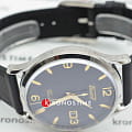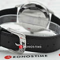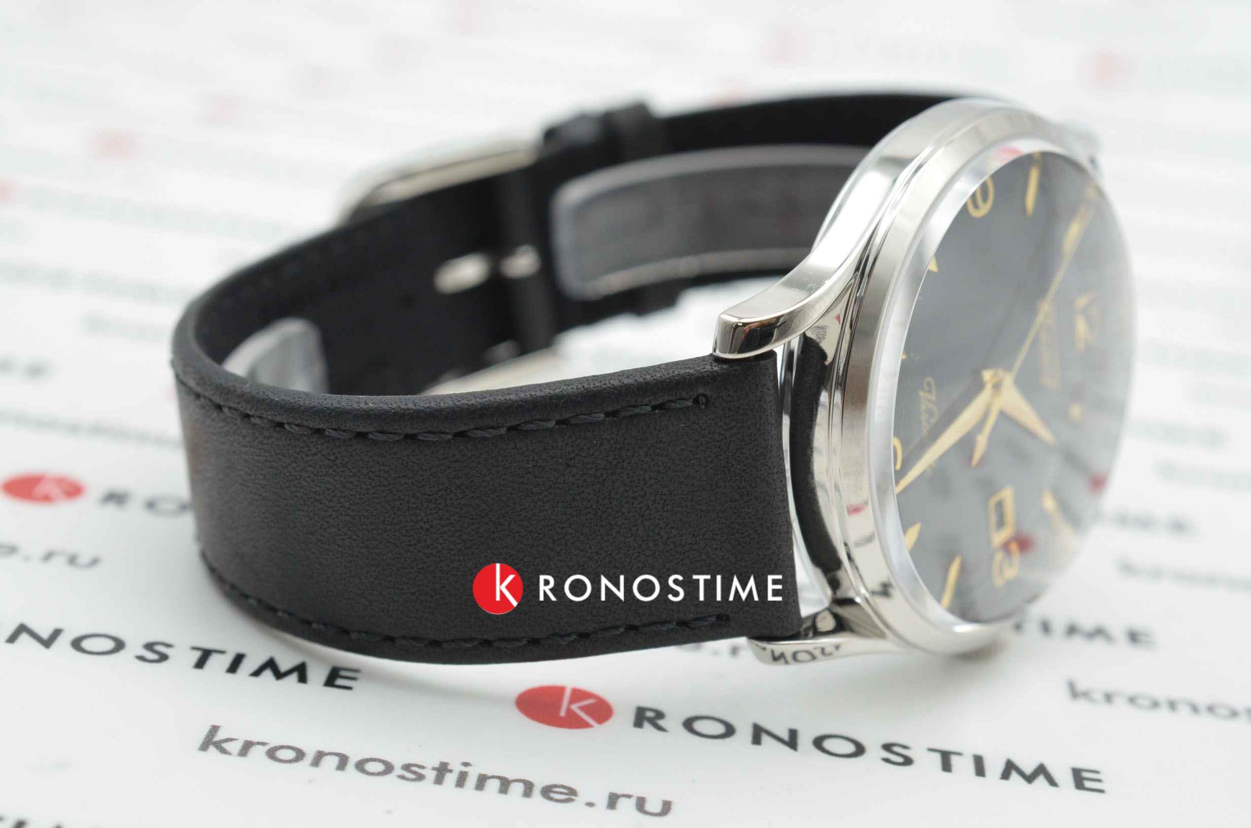 Лаконичные наручные часы идеально подойдут как к деловому костюму, так и к повседневному образу благодаря минималистичному оформлению и использованию сдержанных тонов. На чёрном циферблате ярко выделяются золотистые стрелки. В дизайне аксессуара можно уловить винтажные черты моделей 1960-х годов. Кварцевый высокоточный механизм ETA F06.111. Сапфировое стекло. Ремешок из натуральной кожи. Водостойкость 3 бар. Апертура даты, индикатор EOLEOLПредставляет собой систему, уведомляющую владельца часов о необходимости замены элемента питания. За 2 недели до полного разряда батарейки секундная стрелка перестаёт ходить чётко и начинает перепрыгивать на 3-4 деления.. Габариты: 40 x 40 x 10,7 мм.