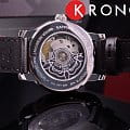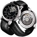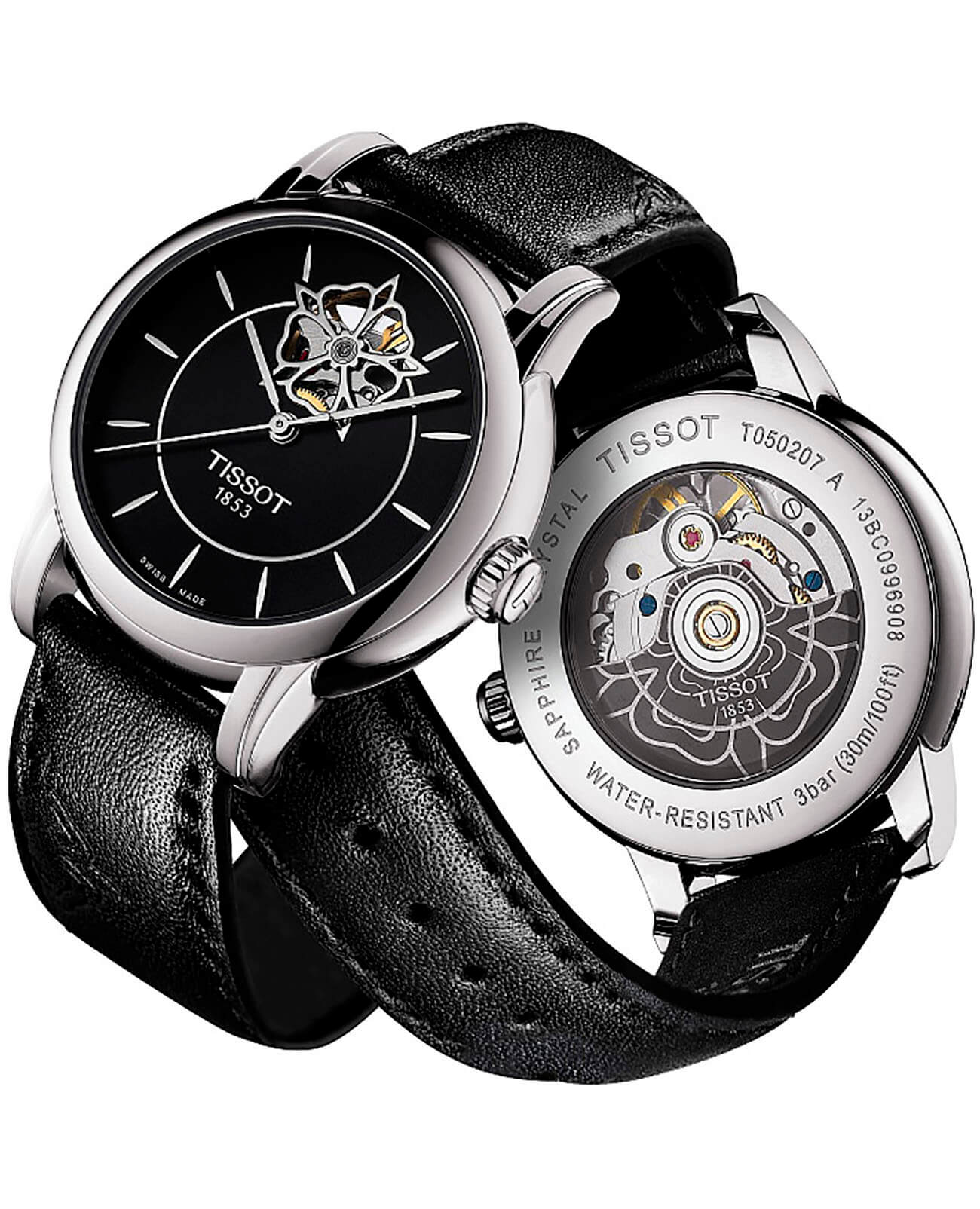 Лаконичный чёрный циферблат добавляет утончённости. Уникальность аксессуара заключается в цветочке, сквозь который просматривается движение частиц механизма. В комплектацию часов входит автоматический швейцарский калибр ETA Powermatic 80Powermatic 80Эксклюзивный калибр от швейцарской компании ETA с увеличенным запасом хода до 80 часов за счёт удлинённой заводной пружины. Характеризуется улучшенной системой спуска со сниженным трением., сохраняющий запас хода 80 часов. Надёжное стекло из сапфира. Прозрачная задняя крышка. Стильный кожаный ремешок. . Габариты: 35 x 35 x 9,35 мм.