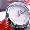 Брендовый аксессуар дополнен броским красным ремешком из натуральной коровьей кожи, позволяя заявить о себе в большой компании. Белый перламутровый циферблат инкрустирован бриллиантами оттенка Top Wesselton, гарантировано, что драгоценные камни соответствуют всем положениям Кимберлийского процесса. Кварцевый калибр ETA F03.111 имеет высокую точность хода. Надёжное сапфировое стекло. Функция EOLEOLПредставляет собой систему, уведомляющую владельца часов о необходимости замены элемента питания. За 2 недели до полного разряда батарейки секундная стрелка перестаёт ходить чётко и начинает перепрыгивать на 3-4 деления.. Габариты: 27,95 x 27,95 x 6,5 мм.