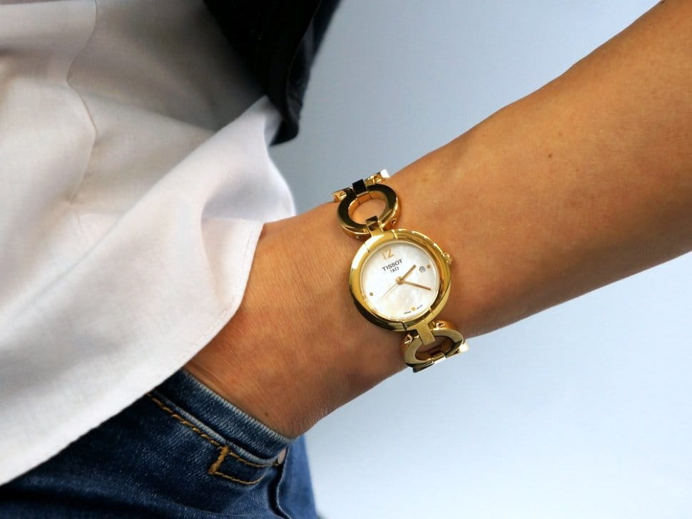 Pinky by Tissot: Само название этой модели пронизано женственностью Это больше, чем просто часы Изделие, свободно охватывающее запястье, производит впечатление элегантного браслета Его великолепные круглые звенья различного размера придают часам особый шарм Очаровательная застежка идеально интегрируется в корпус браслета, словно маскируясь в нем, и дополняет его роскошный стиль Литой корпус с аккуратной отделкой представляет собой завершающий штрих облика часов Для сдержанного и элегантного женского образа подойдет цветная модель из полированного серебра Более игривая и стильная версия часов представлена в полированном корпусе с сатинированной отделкой Ценительницам изысканных аксессуаров придутся по вкусу часы с двухцветной отделкой или радикальный вариант в виде ювелирных часов, полностью выполненных из золота Стоит отметить разнообразное оформление циферблатов, украшенных арабесками в форме звеньев браслета или покрытых белым или черным лаком Каждый из циферблатов дополнен тремя метками в положениях «3», «6» и «9 часов» Часы станут идеальным подарком для Вас или Вашего любимого человека