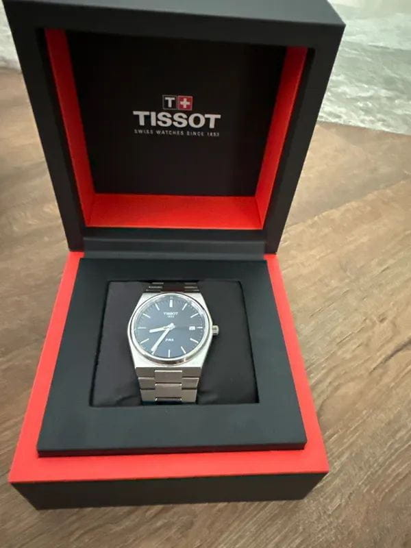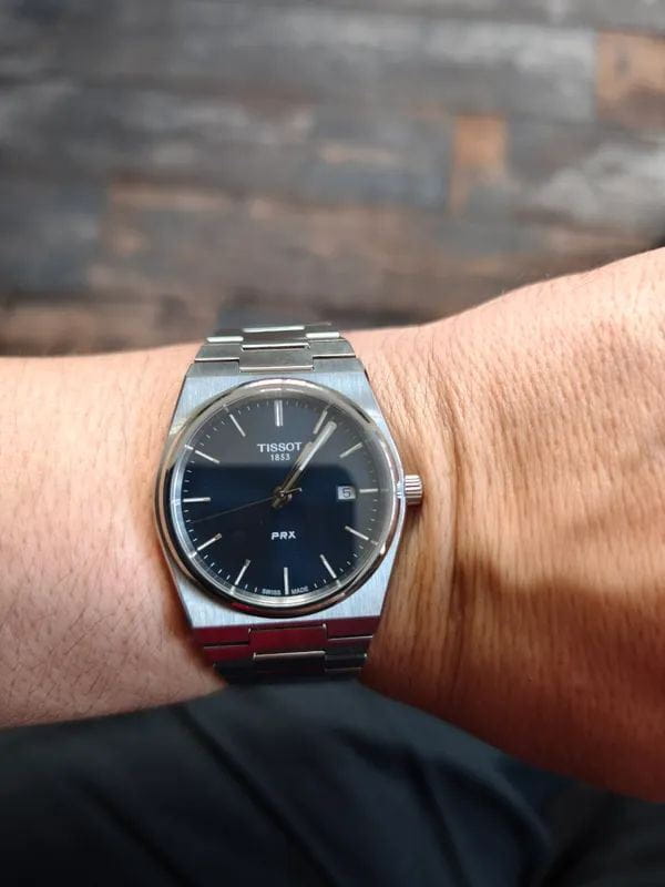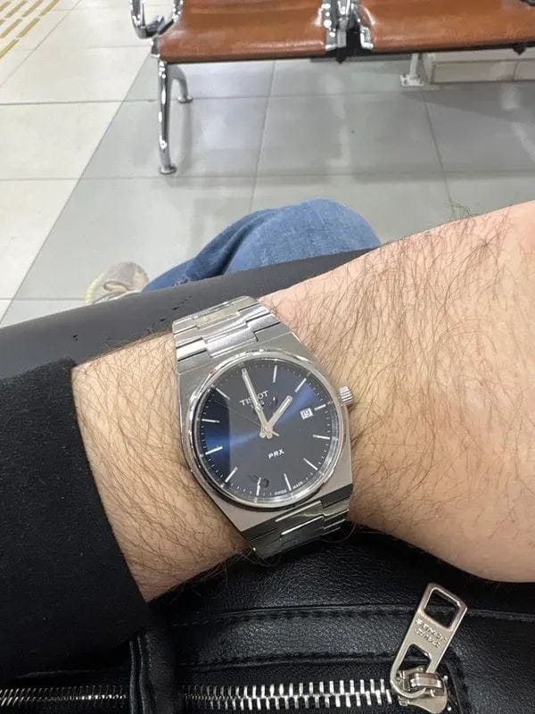 Tissot PRX 40mm (модель T137.410.11.041.00) – элегантные мужские часы, сочетающие стильный дизайн и надёжность. Корпус диаметром 40 мм выполнен из нержавеющей стали 316L, что обеспечивает долговечность и комфорт при ношении. Синий циферблат с эффектом солнечных лучей защищён сапфировым стекломСапфировое стеклоПрочный и надёжный материал из кристалла сапфира синтетического происхождения, характеризующийся особой твёрдостью и устойчивостью к царапинам и повреждениям., устойчивым к царапинам.