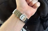 Браслет из нержавеющей стали оснащён застёжкой 'бабочка'Застёжка "бабочка"Такой вид застёжки дополняется предохранителями, помогающими избежать случайного раскрытия браслета. Обладают изящным исполнением. , которая обеспечивает удобную посадку и безопасность. Водонепроницаемость 10 бар (100 метров) делает часы надёжным спутником как в повседневной жизни, так и при занятиях водными видами спорта.