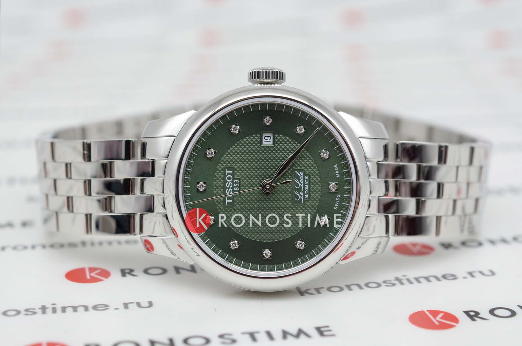 Женские наручные часы Tissot Le Locle Automatic Lady (модель T006.207.11.096.00) – утончённое сочетание элегантности и технологичности. Корпус диаметром 29 мм выполнен из нержавеющей стали 316L и оснащён прозрачной задней крышкой, позволяющей наблюдать за работой швейцарского механизма. Зелёный циферблат с узором "clous de Paris" и восемью бриллиантами подчёркивает изысканность модели. Он надёжно защищён сапфировым стекломСапфировое стеклоПрочный и надёжный материал из кристалла сапфира синтетического происхождения, характеризующийся особой твёрдостью и устойчивостью к царапинам и повреждениям. с антибликовым покрытиемАнтибликовое покрытиеСлой оксида металла в 0,13-0,3 микрон, благодаря которому стекло часов не бликует и не отражает свет. Антибликовое покрытие уменьшает отражение света в 10 раз, обеспечивая отличную читаемость показателей циферблата., обеспечивающим идеальную читаемость. Механизм Powermatic 80Powermatic 80Эксклюзивный калибр от швейцарской компании ETA с увеличенным запасом хода до 80 часов за счёт удлинённой заводной пружины. Характеризуется улучшенной системой спуска со сниженным трением. с запасом хода 48 часов оснащён инновационной пружиной Nivachron™Nivachron™Специально разработанный инновационный сплав Nivachron™ повышает устойчивость часов к воздействию магнитных полей., повышающей устойчивость к магнитным полям и ударам. Браслет из нержавеющей стали дополнен удобной застёжкой 'бабочка'Застёжка "бабочка"Такой вид застёжки дополняется предохранителями, помогающими избежать случайного раскрытия браслета. Обладают изящным исполнением. , обеспечивающей комфортное ношение. Водонепроницаемость 3 бара (30 метров) защитит от случайных брызг. Идеальный аксессуар для женщин, ценящих сочетание классики и передовых технологий.
