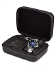 Градиентный синий циферблат имеет метки и стрелки, дополненные люминесцентным покрытиемЛюминесцентное покрытиеПозволяет считывать показания времени в темноте. Производители наносят на стрелки, часовые индексы, безель или поверхность циферблата светонакопительный состав, дающий холодное свечение.. Поворотный керамический безельБезельВнешний ободок, закрепляющий стекло. В спортивных часах так называется поворотное кольцо с делениями на циферблате, выполняет роль таймера – замеряет отрезки времени на шкале. Неподвижный безель – элемент декора. Однонаправленно вращающийся безель на дайверских часах позволяет фиксировать моменты погружения и выныривания на поверхность. защищён от царапин. Модель отличается повышенной водостойкостью в 30 бар. Заводная головка около позиции 10 часов имеет гелиевый клапан для отвода газа – запатентованное изобретение Tissot. Часы комплектуются швейцарским высококлассным и надежным механизмом хронографом с автоподзаводом и изысканным декором ETA Valjoux A05.H21ValjouxПремиальный калибр от швейцарской компании ETA c уникальной отделкой механизма. Отличается увеличенным запасом хода от 45 до 60 часов, в зависимости от калибра, точность хода составляет +/- 5 секунд в сутки. с запасом хода на 60 часов. Функции: хронографХронографФункция позволяет измерять отрезки времени с особой точностью: часы, минуты, секунды. Верным признаком хронографа является наличие на циферблате 3 дополнительных окошек-счётчиков., секундомер, календарь. Модель поставляется в оригинальном кейсе с дополнительным каучуковым ремешком.